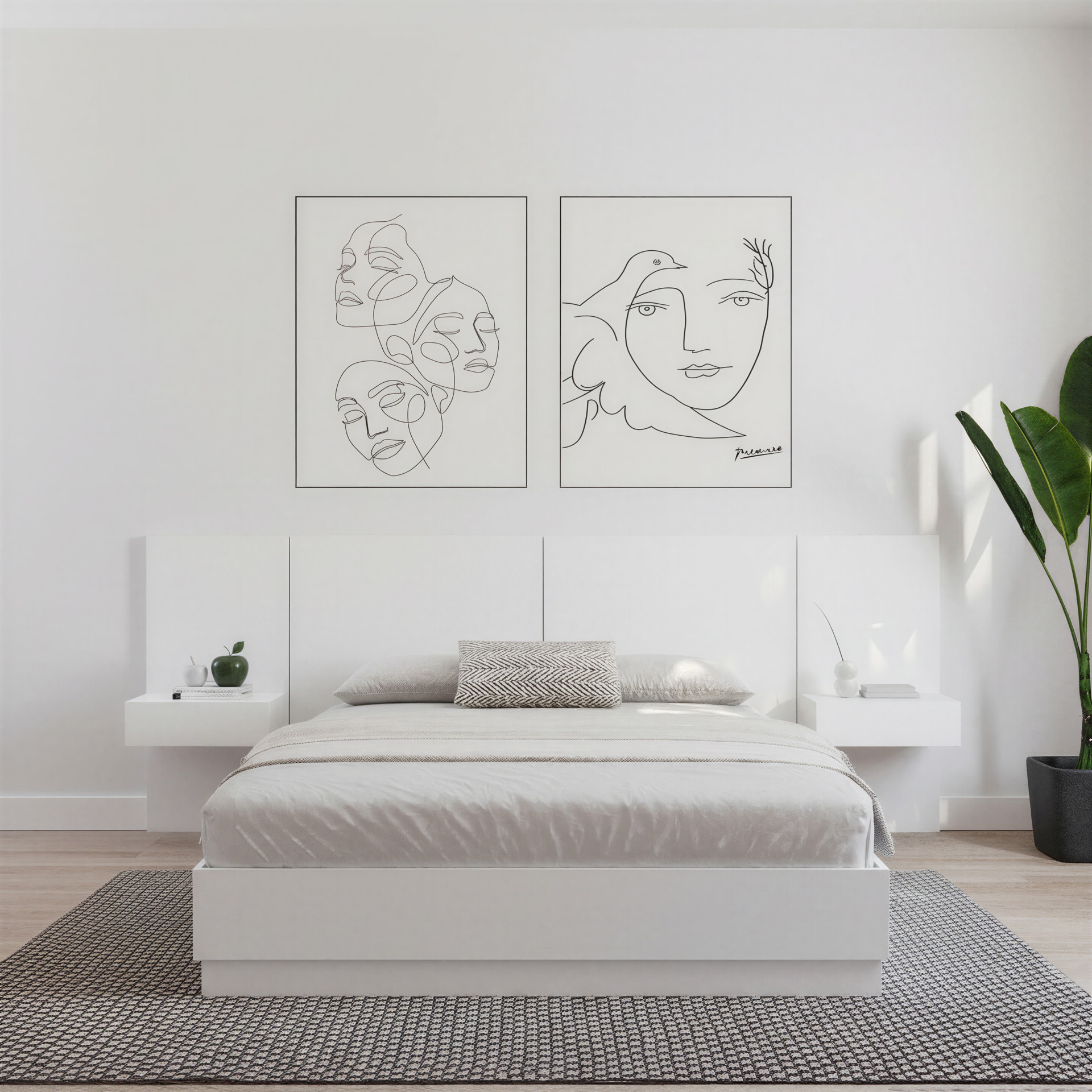 * Set of 2 panels with integrated nightstand