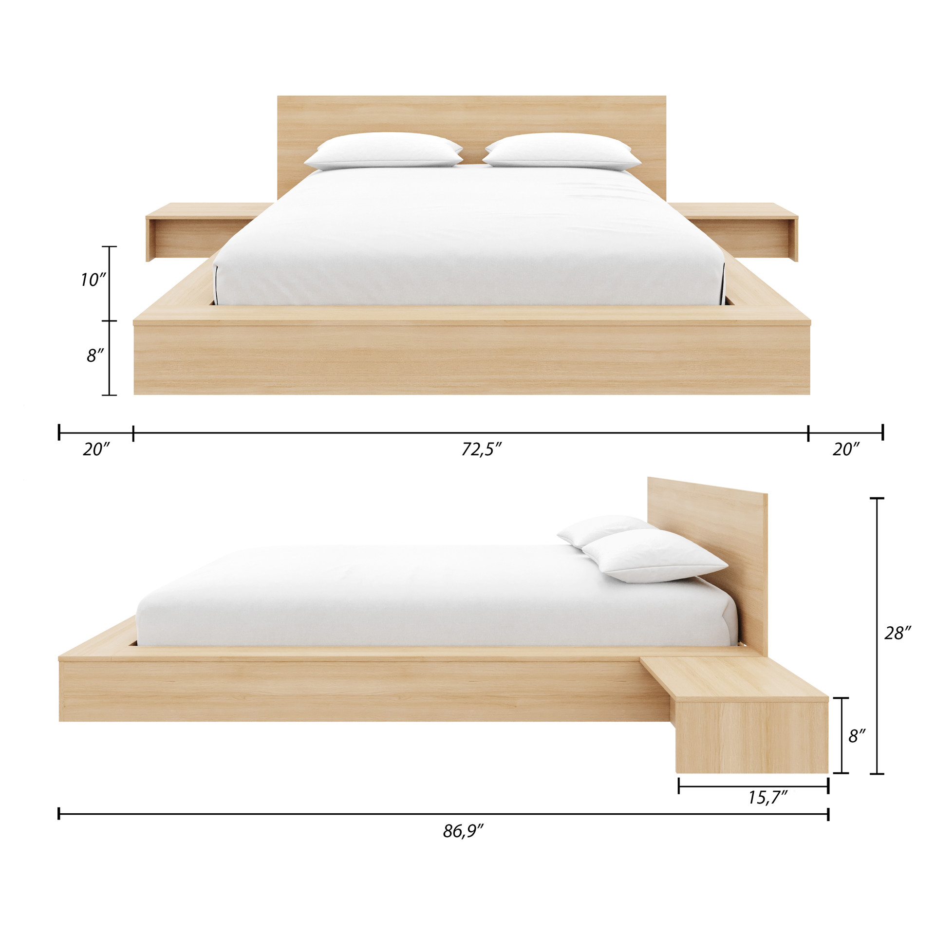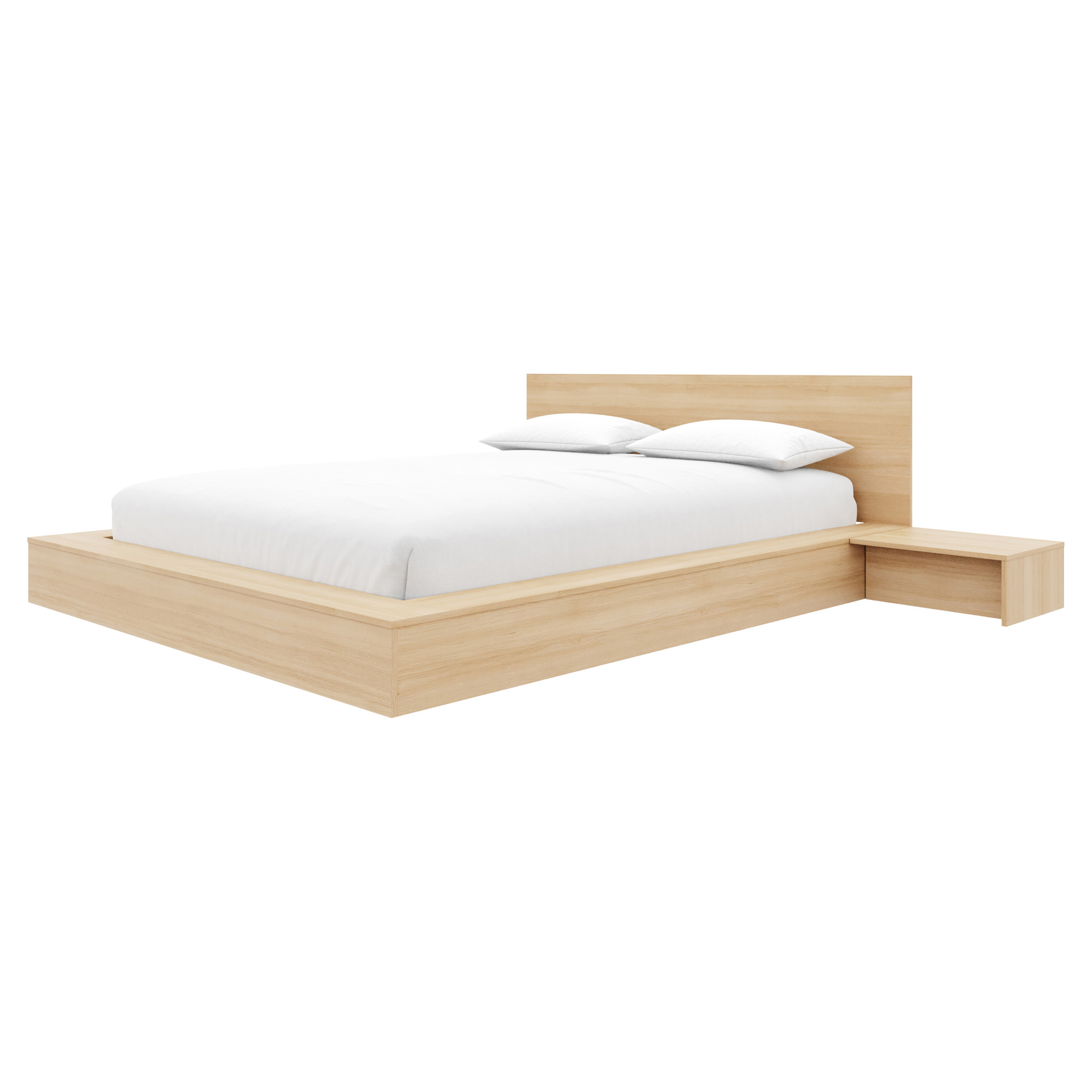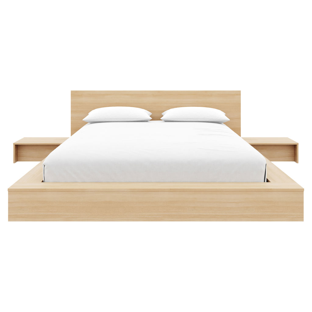 Its low, grounded design fosters a sense of openness and serenity, while the wide platform sides provide convenient space to keep your phone, books, or essentials within easy reach.