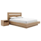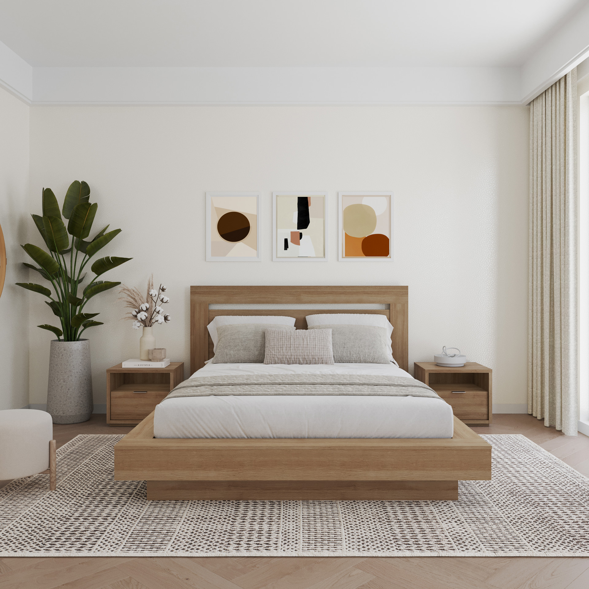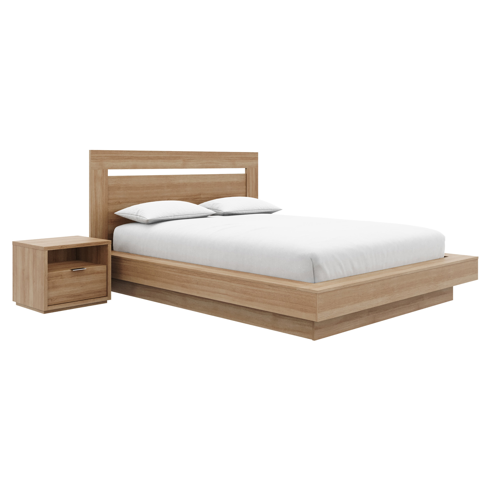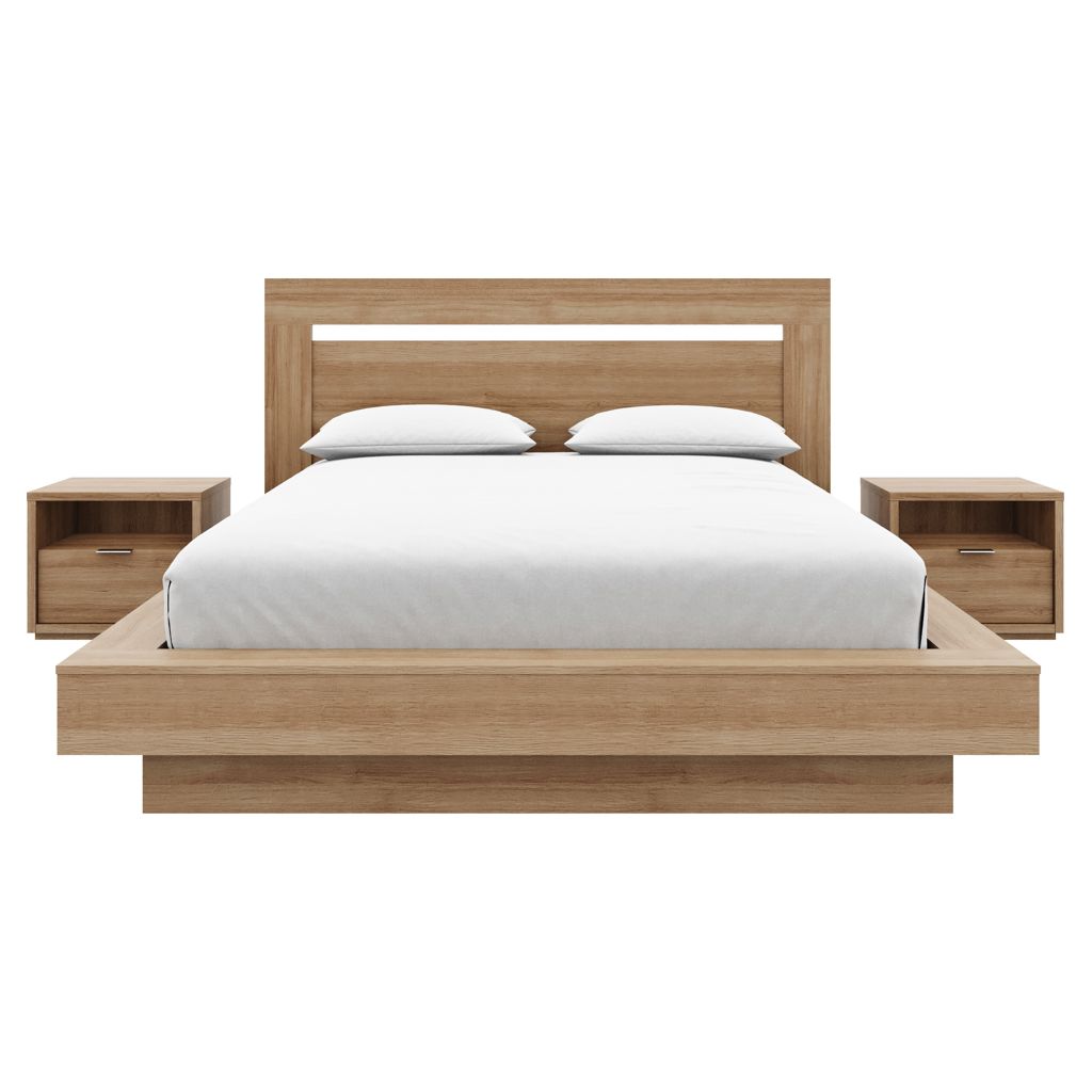Elevate the sophistication of your bedroom with our brown oak platform bed, a sleek yet sophisticated piece meticulously crafted from premium engineered wood. Its minimalist design brings a modern, contemporary touch to your resting space. The central supports and concealed plinth base create a unique floating effect, giving your bedroom a distinctive look.