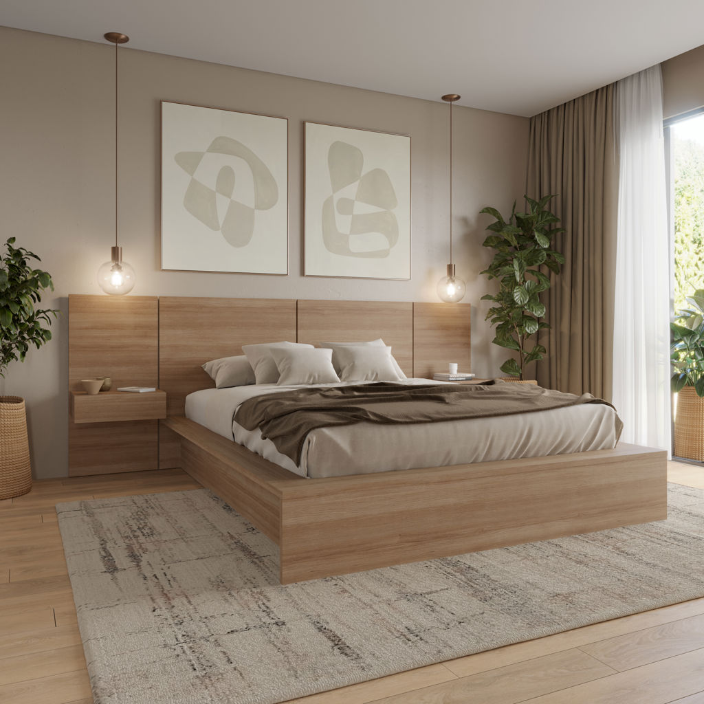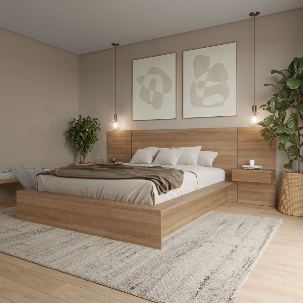 Elevate the style of your bedroom with our modern headboard, featuring clean lines and minimalist aesthetics. Crafted from high-quality engineered wood, this headboard highlights the color variation of the wood grain, adding an organic touch to your space.