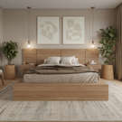 Discover our platform bed, a perfect fusion of contemporary and modern design. Made from high-quality engineered wood, this brown oak-finish bed will bring a warm, organic touch to your space.