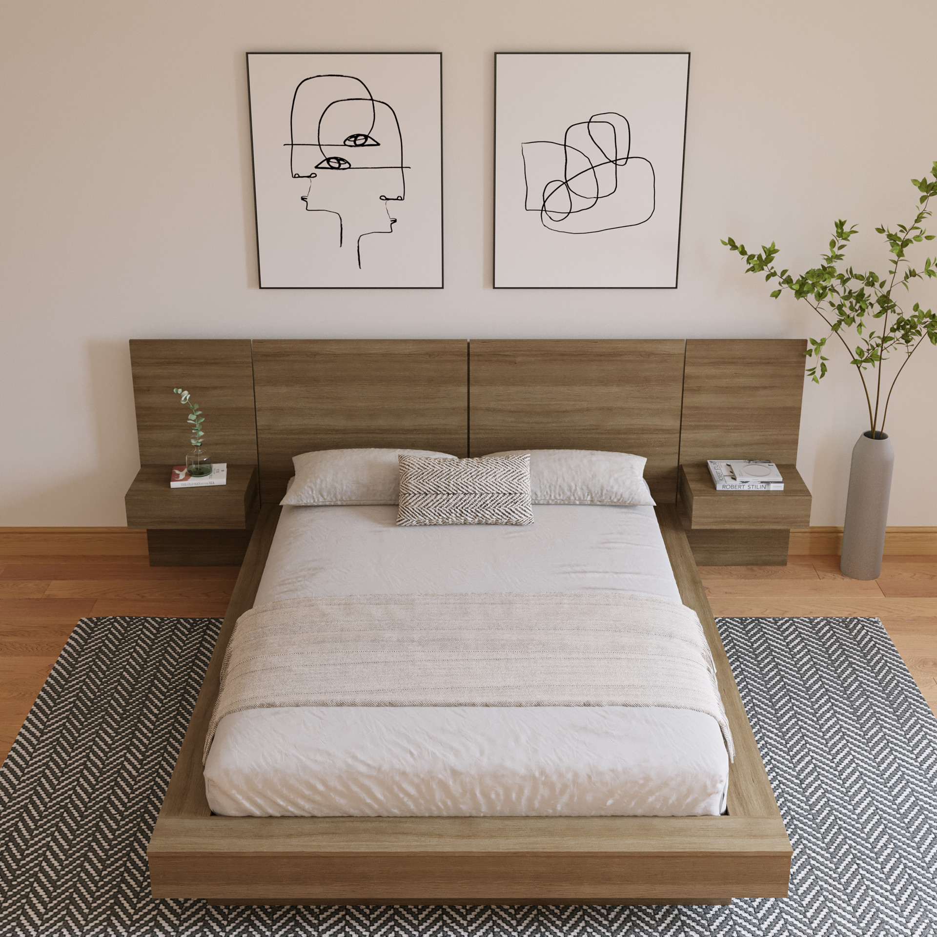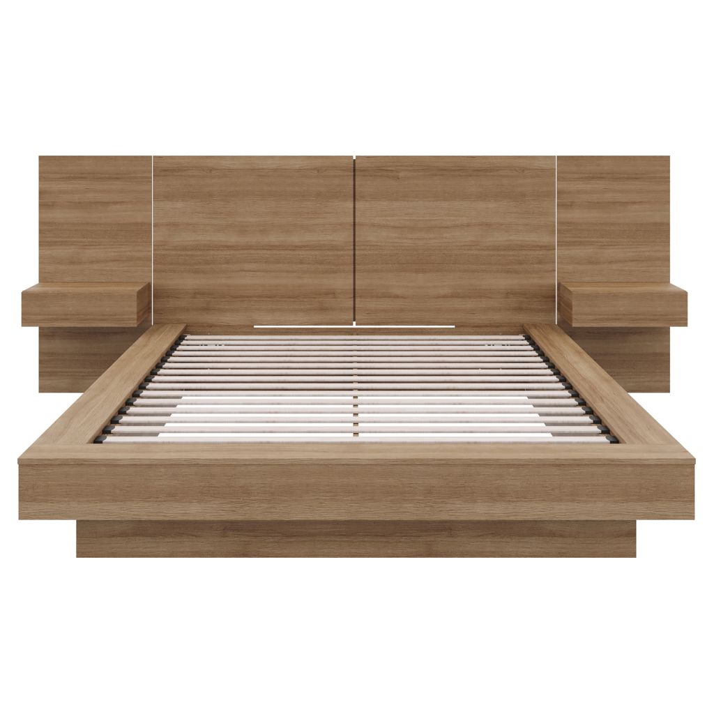 Elevate the sophistication of your bedroom with our brown oak platform bed, a sleek yet sophisticated piece meticulously crafted from premium engineered wood. Its minimalist design brings a modern, contemporary touch to your sleeping space.
