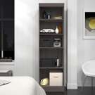 This shelving unit is ideal as a tall, narrow bookcase, a linen cabinet, or a closet organizer, and it can also be a perfect complement to your bedroom set.
