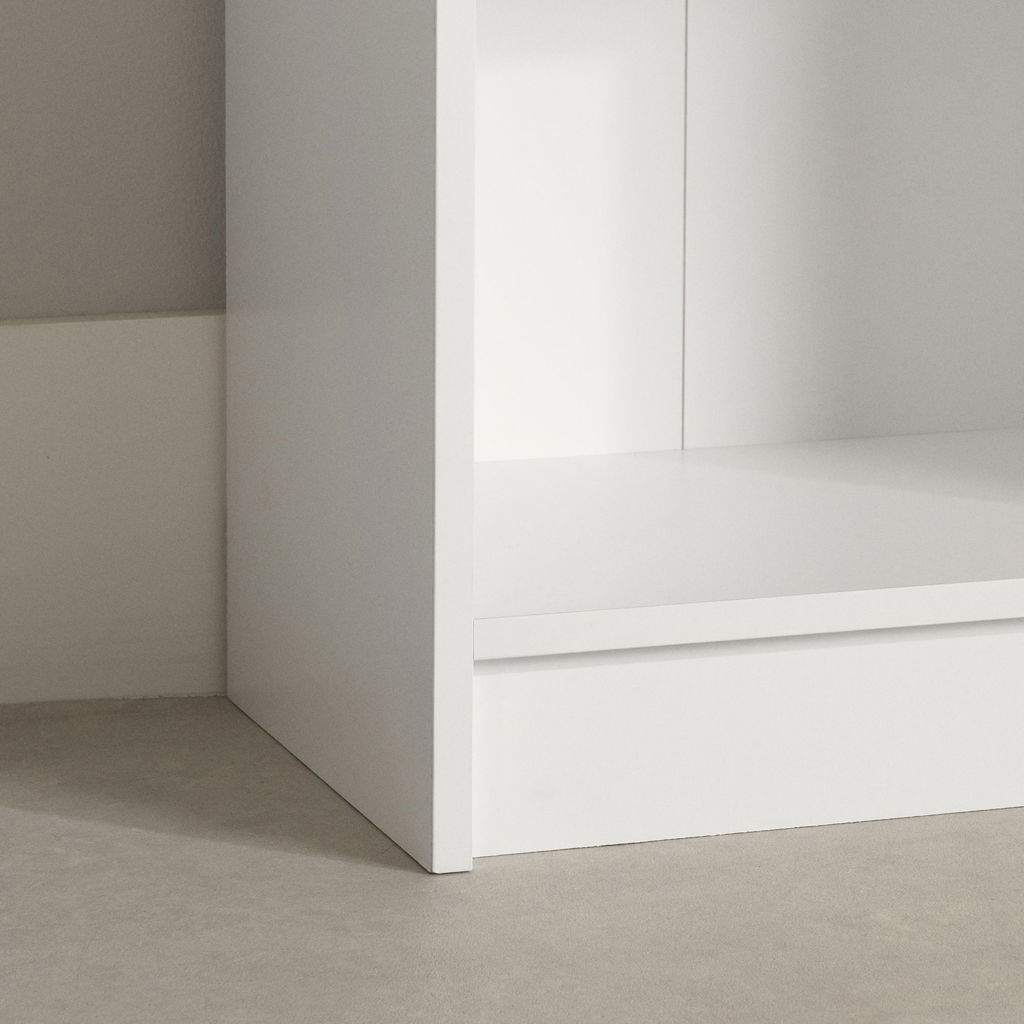 The symmetry of the straight lines within the storage compartments gives this practical piece of furniture a contemporary flair. Unique in appearance, this cut-out also has a functional side, allowing you to categorize your books efficiently.