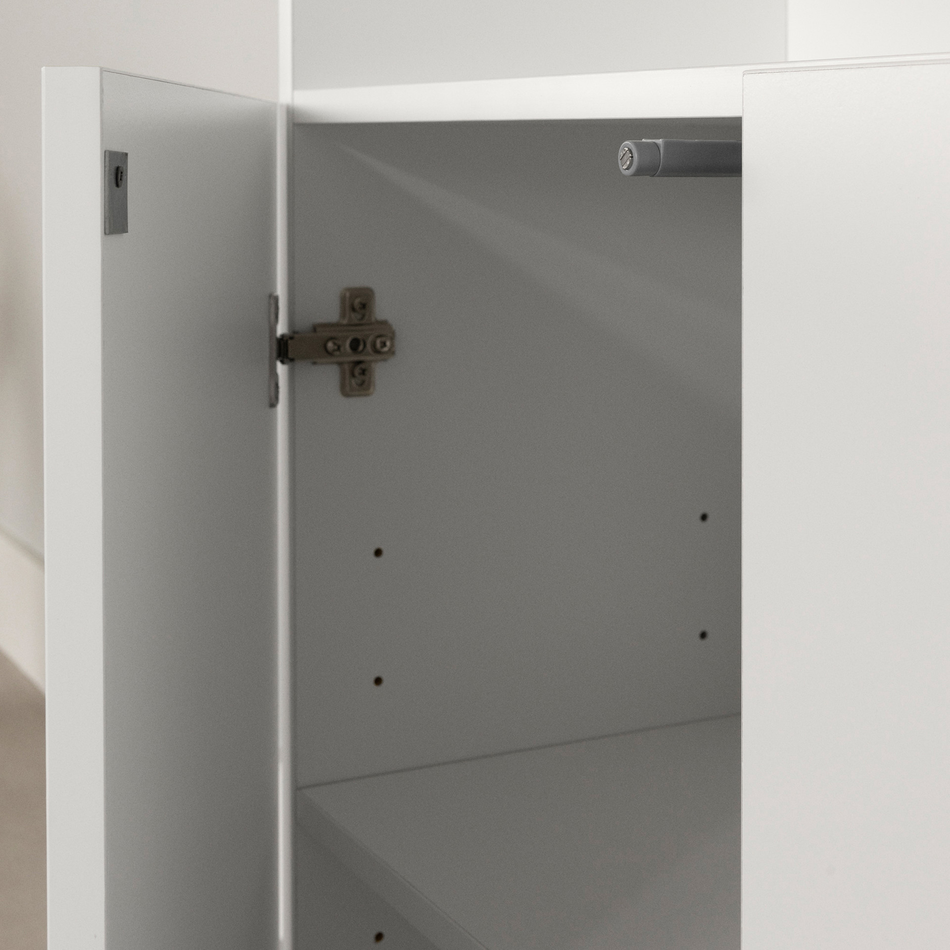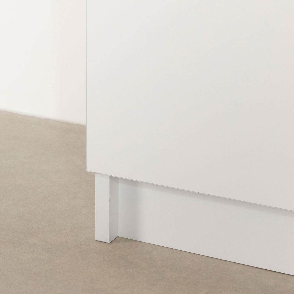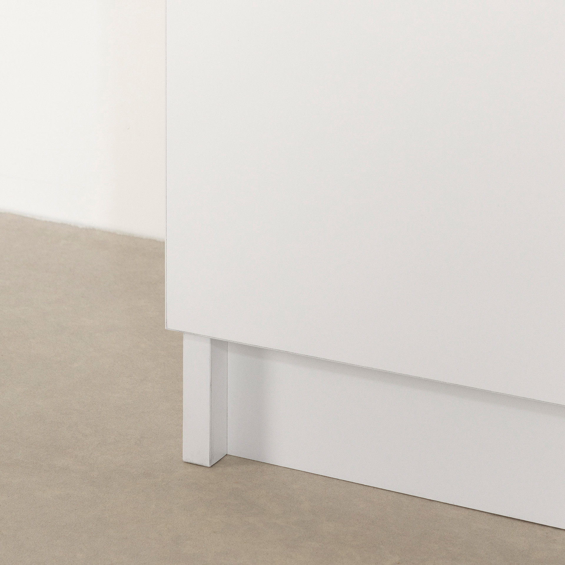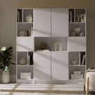 The main bookcase, slightly wider than the other 2, hides 2 adjustable shelves behind its 4 handleless doors. The 2 narrow shelves, meanwhile, offer up to 6 configurations in terms of division and door orientation. Using the smart push-to-open mechanism, open the doors with a simple press. The straight, clean cut of this set of shelving units will create a harmonious ambience.