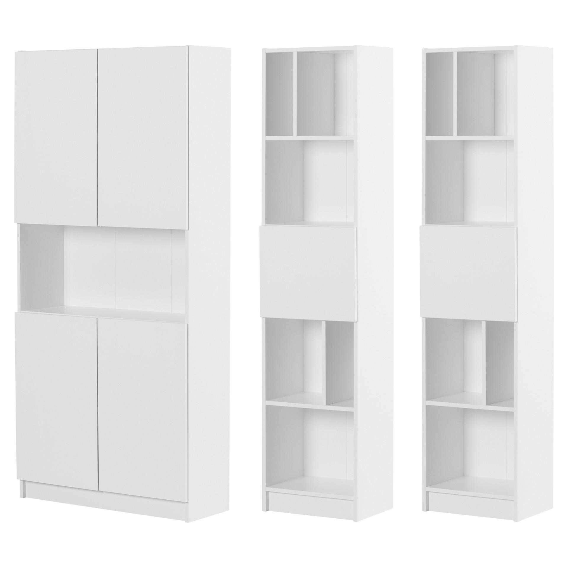3 IN 1 STORAGE SOLUTION: This set includes 1 4-door shelf and 2 narrow bookcases. Place them side-by-side or separately, depending on the layout of your living room.