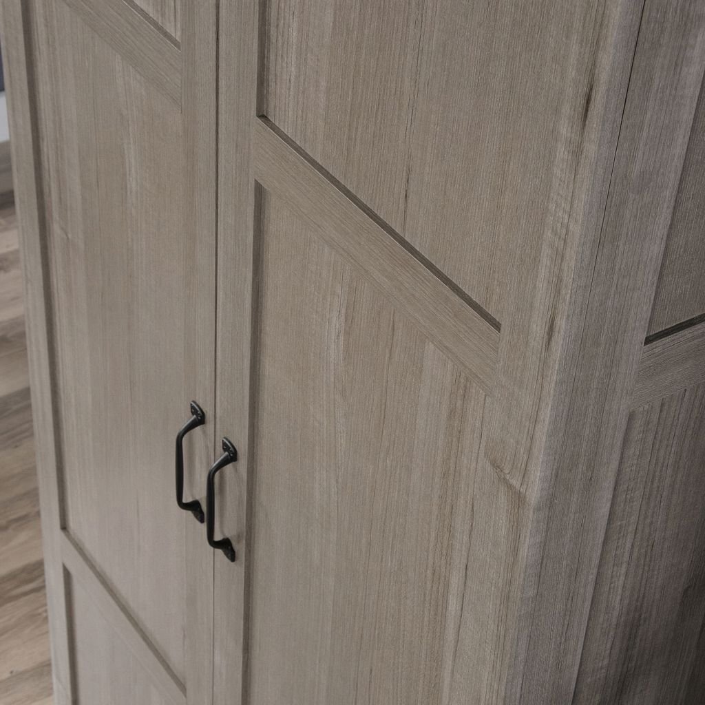 Finished in a beautiful Highland Oak and detailed with frame and panel doors and sides, this tall cabinet is ideal for kitchen pantry items, basement storage, garage organization, laundry room efficiency, or anywhere a storage solution is needed.