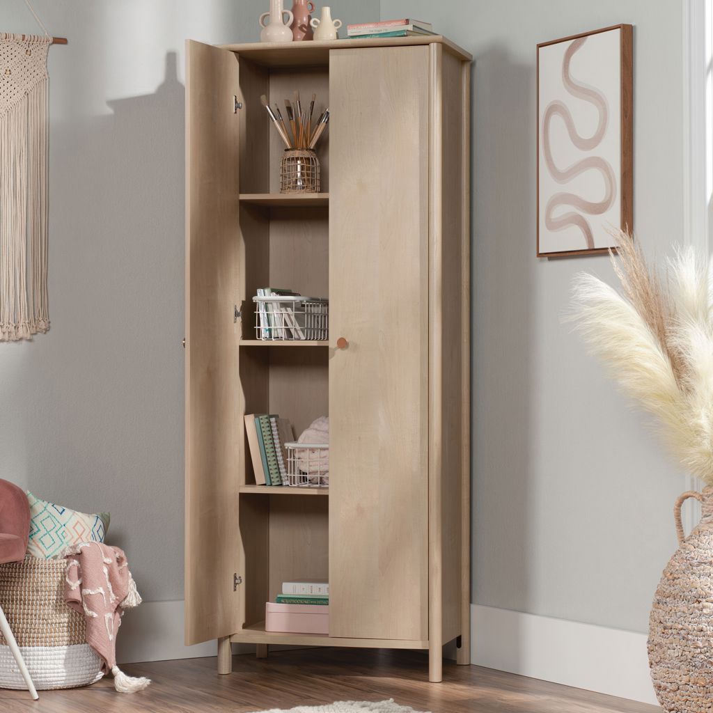 Your solution to a lack of storage space has arrived. Add a versatile and mobile option with a finish that will match any home décor with this two-door storage cabinet from the Sauder Select collection.
