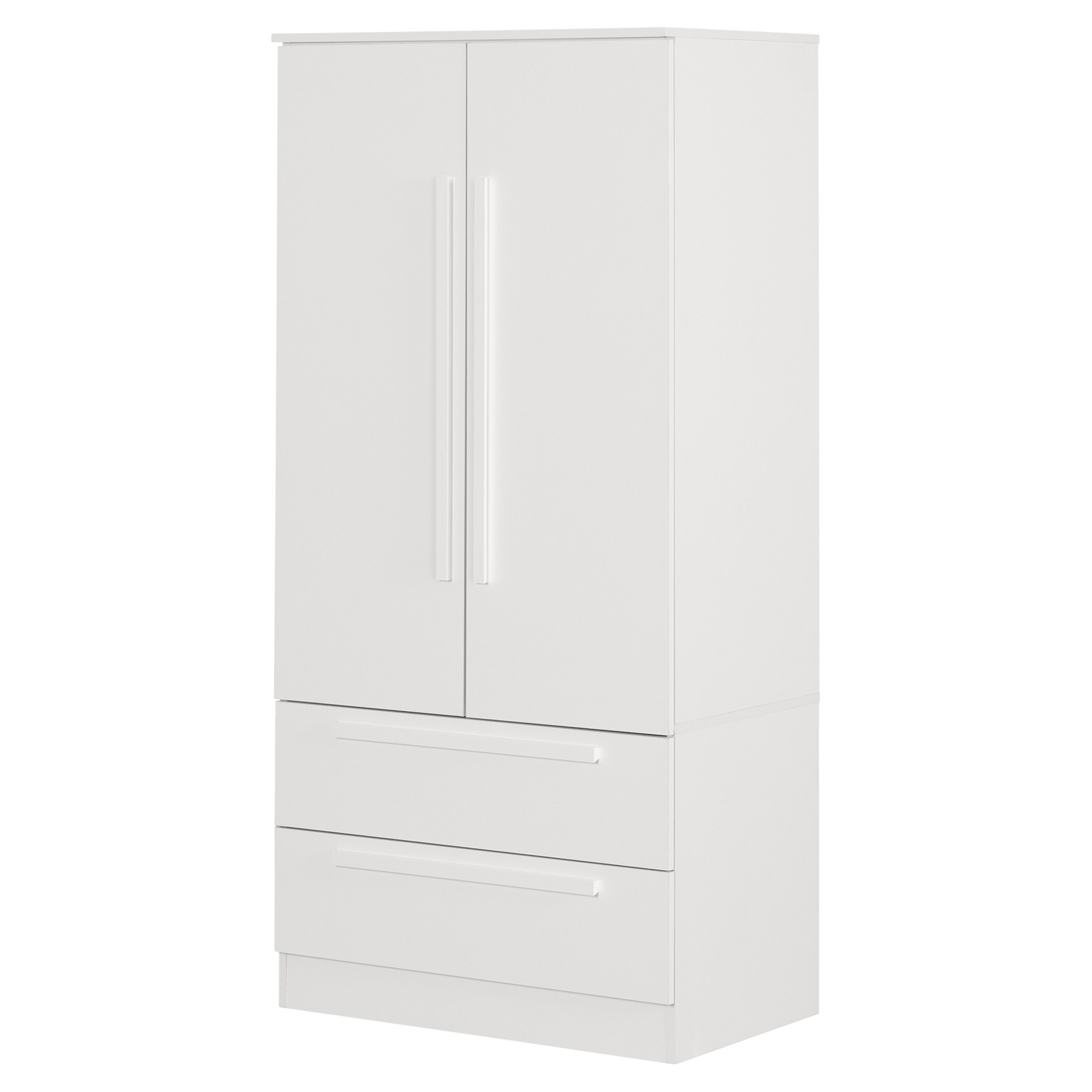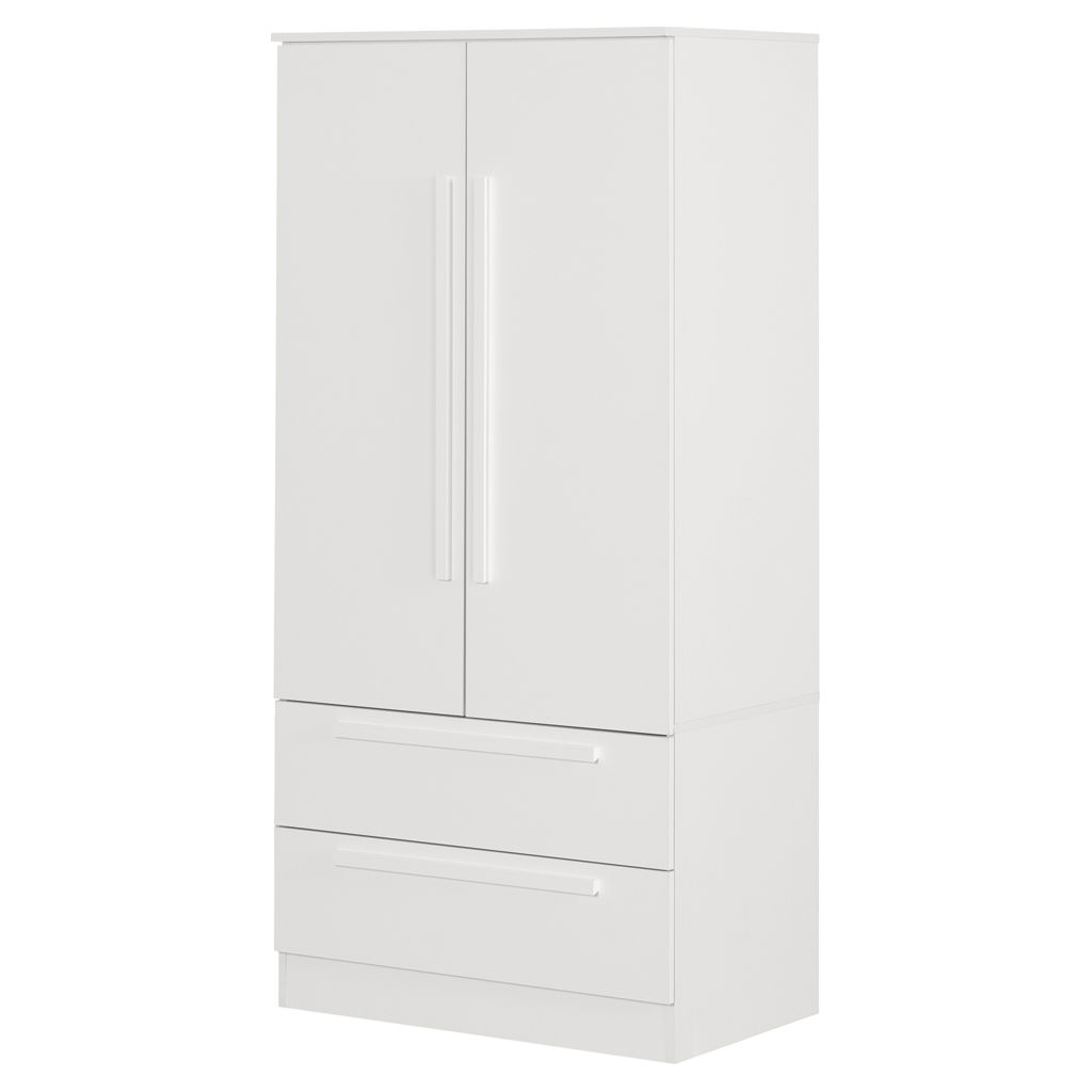 Make the most of every inch with this wardrobe featuring two spacious drawers, a metal hanging rod, and adjustable shelves behind the doors for customized clothing storage.