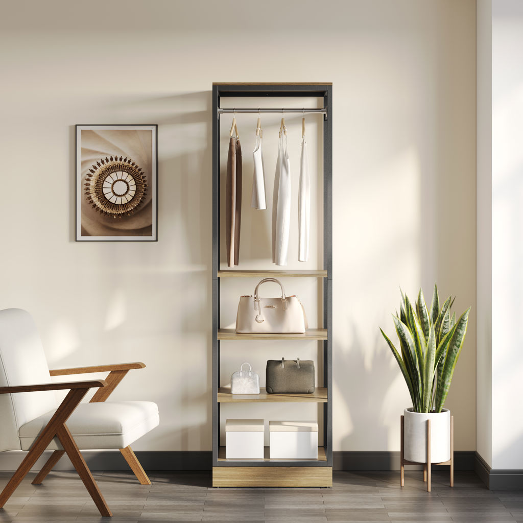 No need to search for your clothes or accessories: find them neatly organized and stored in the cabinets or on the shelves (which can support up to 25 lbs.). What's more, the metal pole lets you hang ties, scarves or clothes. that need hangers.