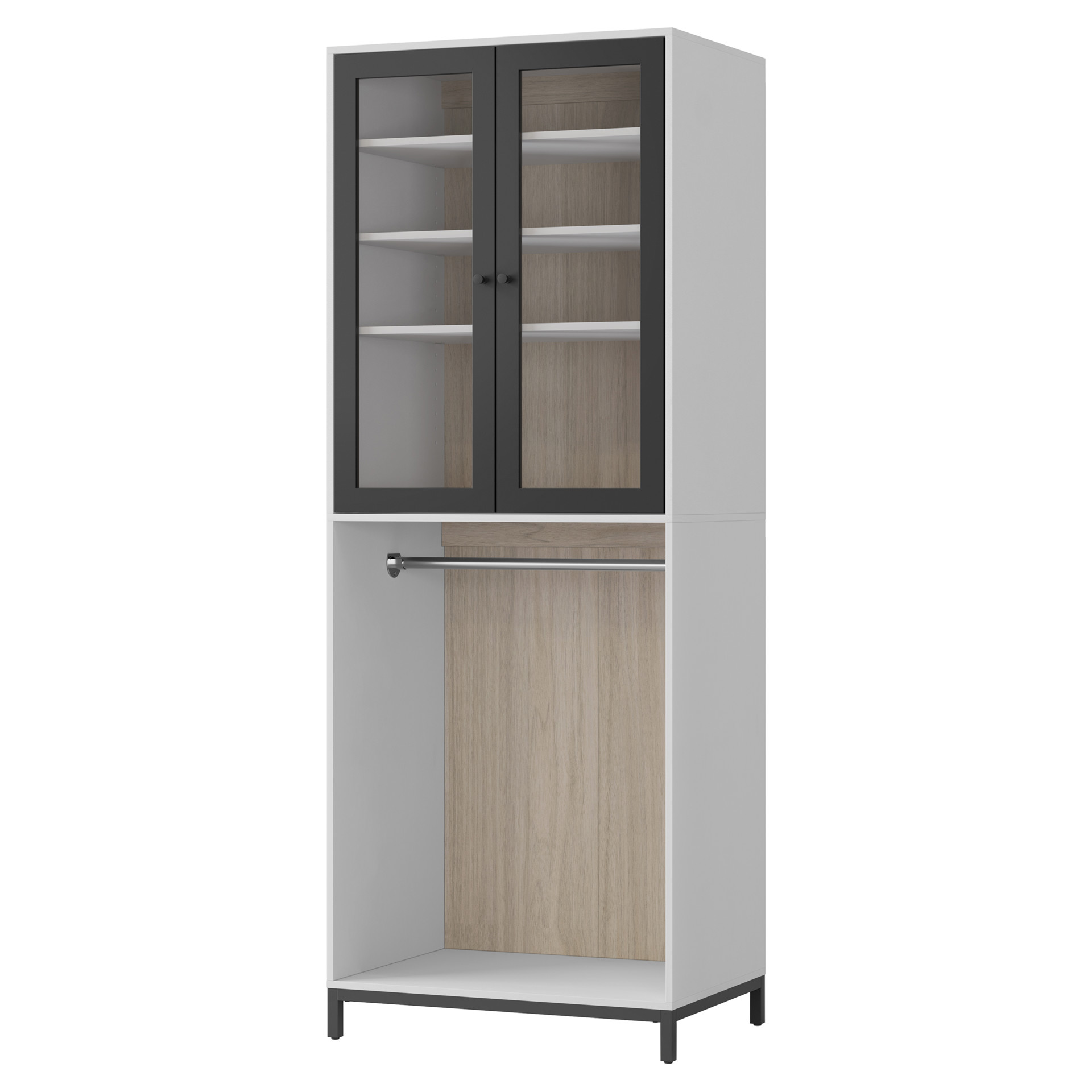 This element of the 80" Scott Living Legault closet system offers today's modern families sophisticated closet storage. Crafted from composite wood, metal and glass, the piece encourages organization and beauty.