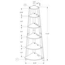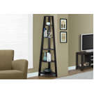 Configure this bookshelf easily and let it enhance your home. Enjoy a bookcase that fits neatly into your living room, office or bedroom, allowing you to use it for books and any type of decoration. A spot that's often hard to maximize – a corner – is no longer a problem with this modern cappuccino-coloured and wooden look cabinet that's sure to help you maximize the available space with 5 shelves. Three sturdy legs ensure the structural integrity of this corner shelf. Anti-tilt hardware is included for added stability. Maximize the space in the corner of your room; this shelf is ultra-practical. The bookcase fits perfectly in the corner; 5 shelves constructed of thick panels are ideal for books and other decorative items. Wood look finish in cappuccino is fashionable and blends with any style. Ideal for a living room, bedroom, office or hallway.