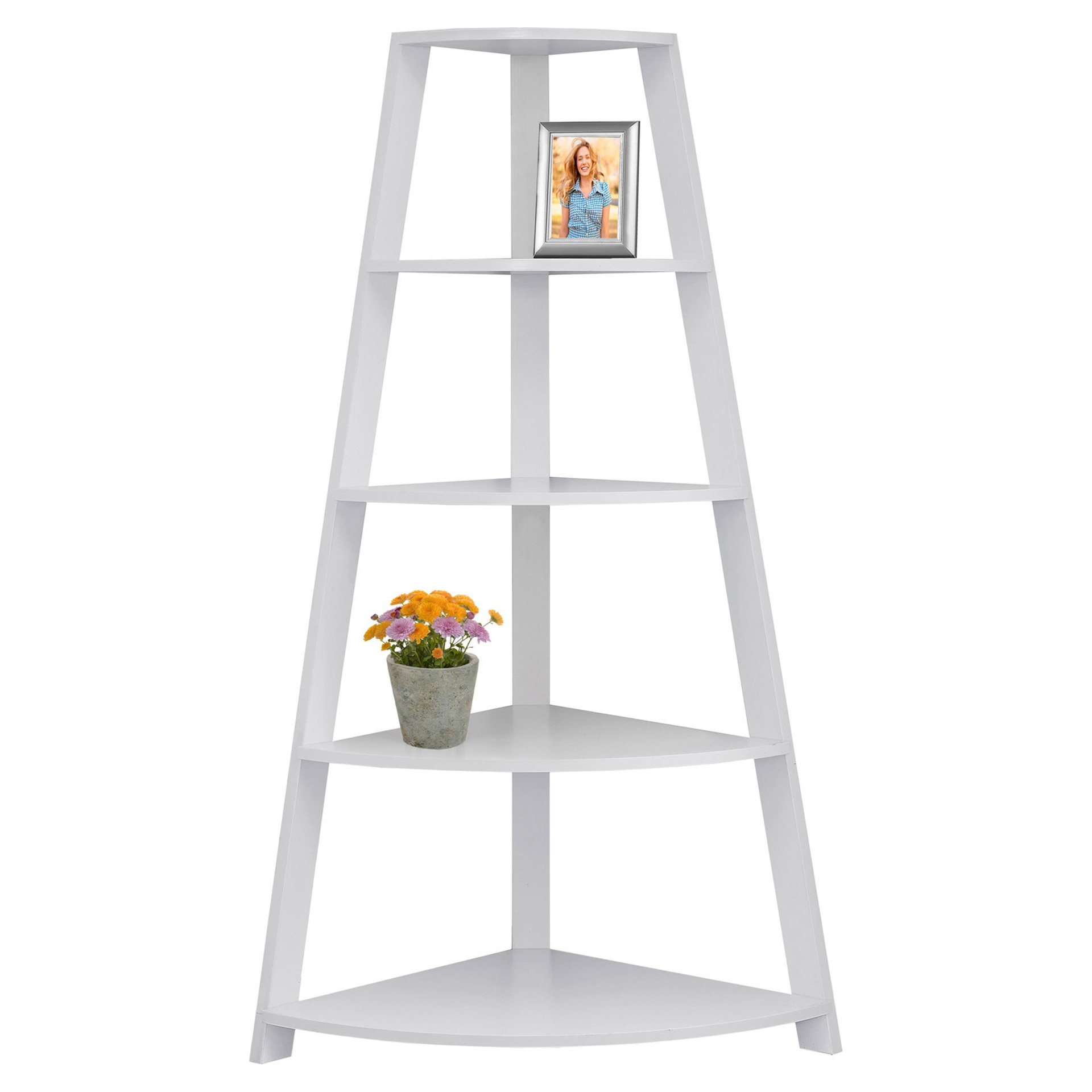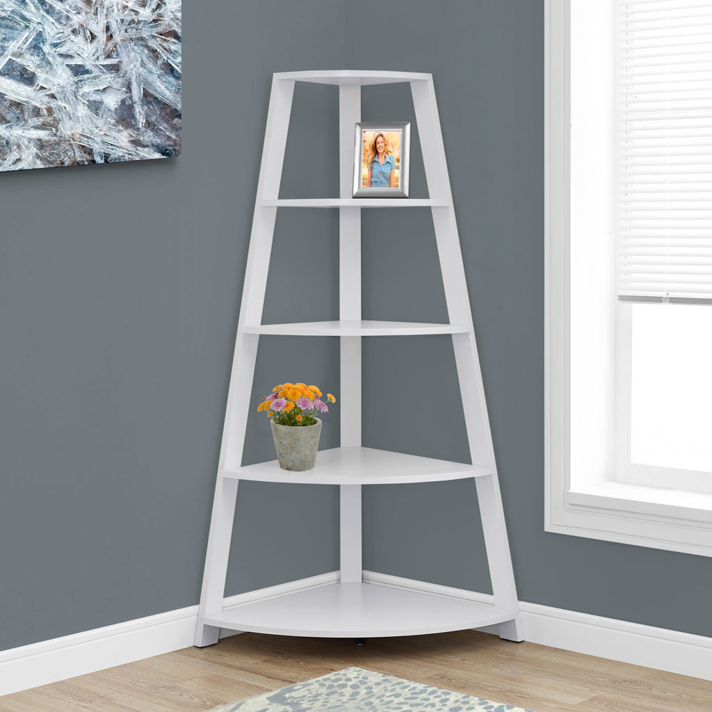 Complete your living room, hallway or office décor with this white corner shelf unit. With its contemporary design and 4 thick shelves, this shelf unit will match any décor while providing ample storage space.