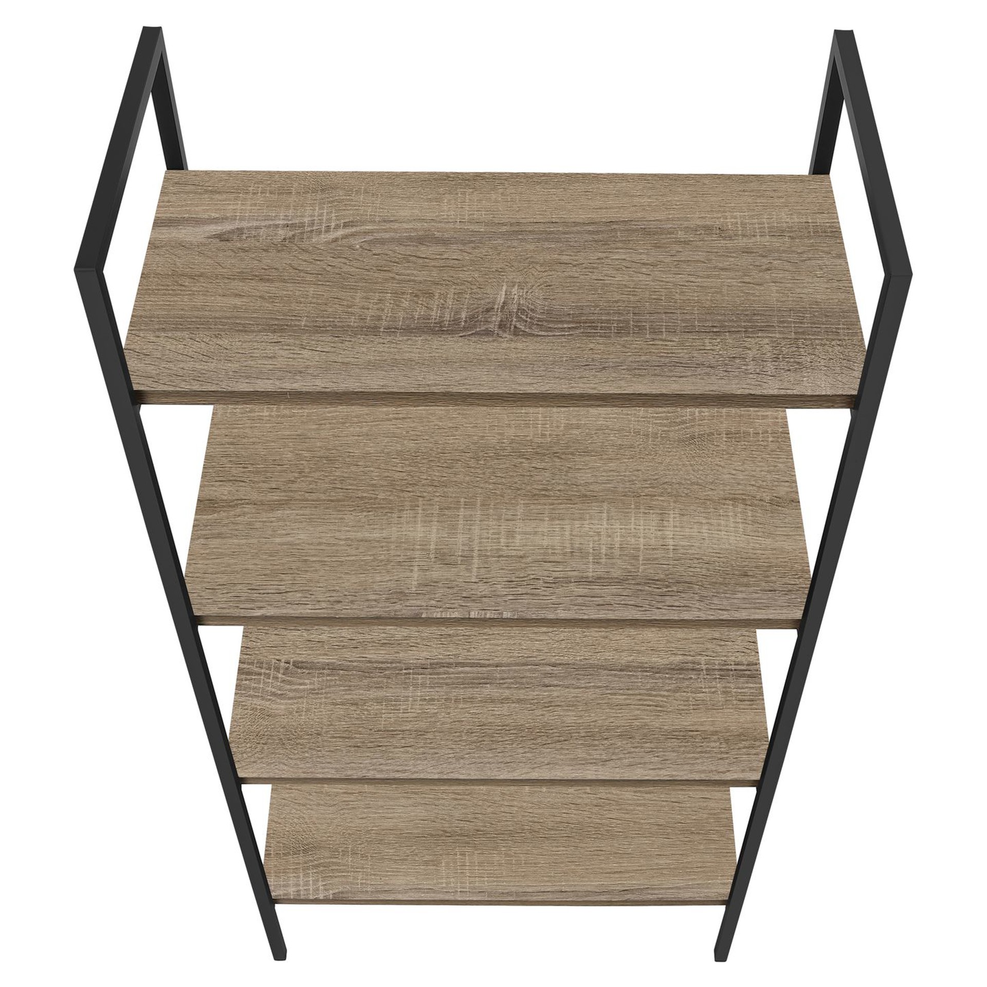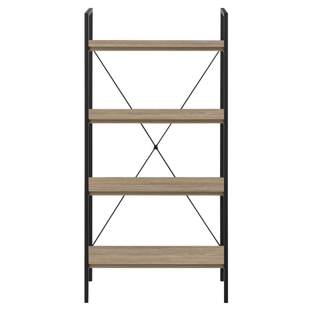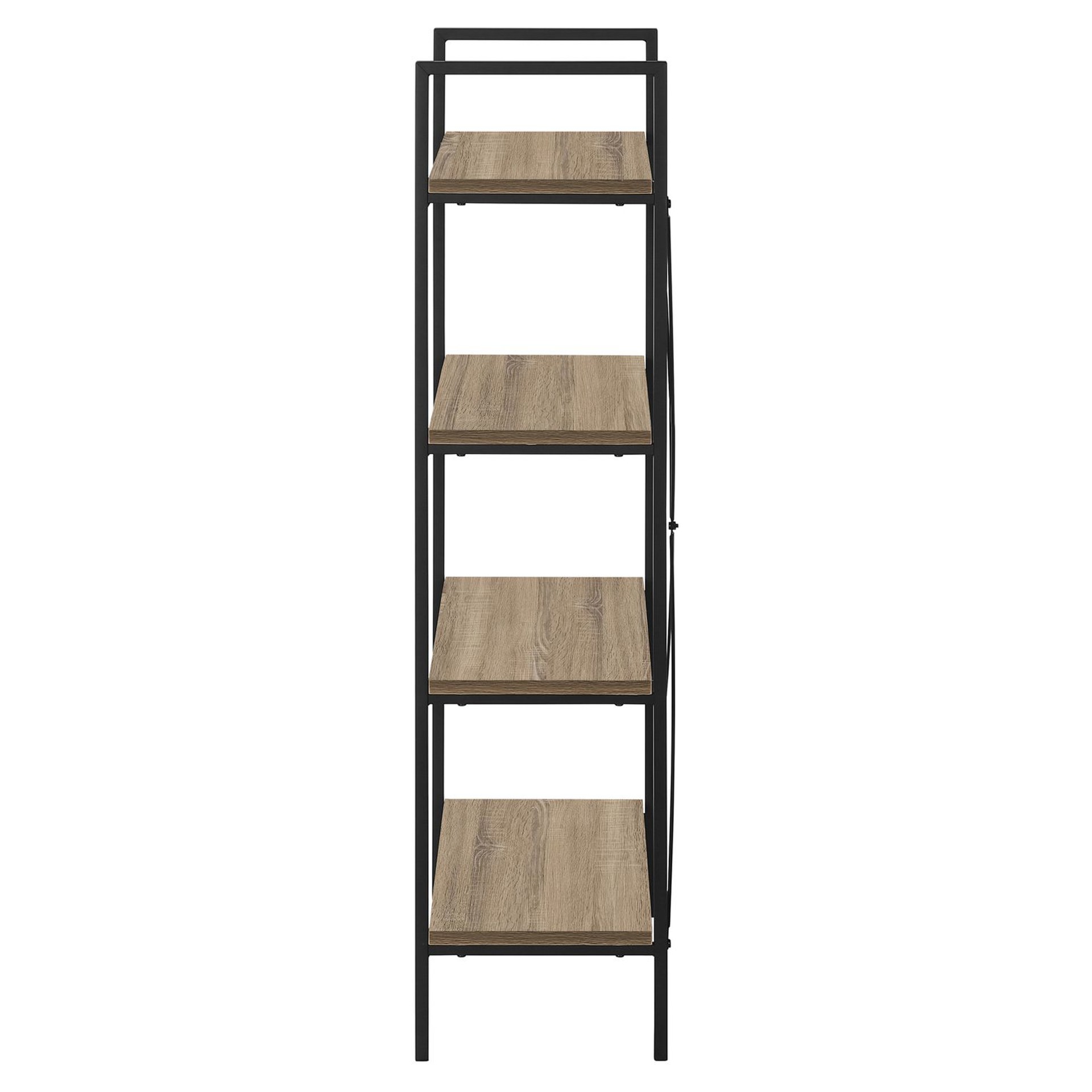 • This bookcase, finished in a dark taupe wood-look laminate, has a space-saving design and 4 shelves for maximum versatility.