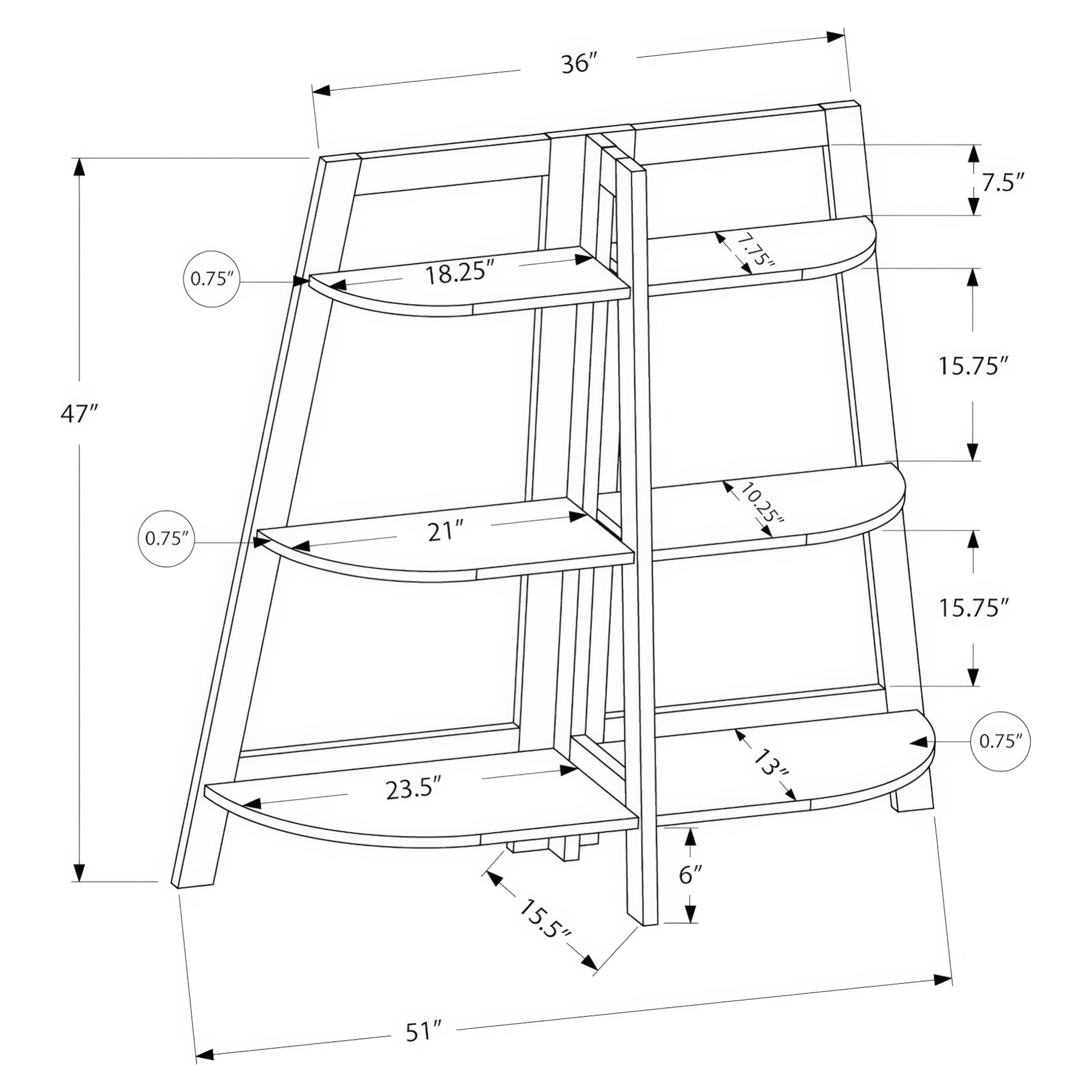With its 6 thick, half-moon-shaped shelves, this shelf is the perfect place to place your books or decorative objects. Ideal for small spaces without having to sacrifice your decor.