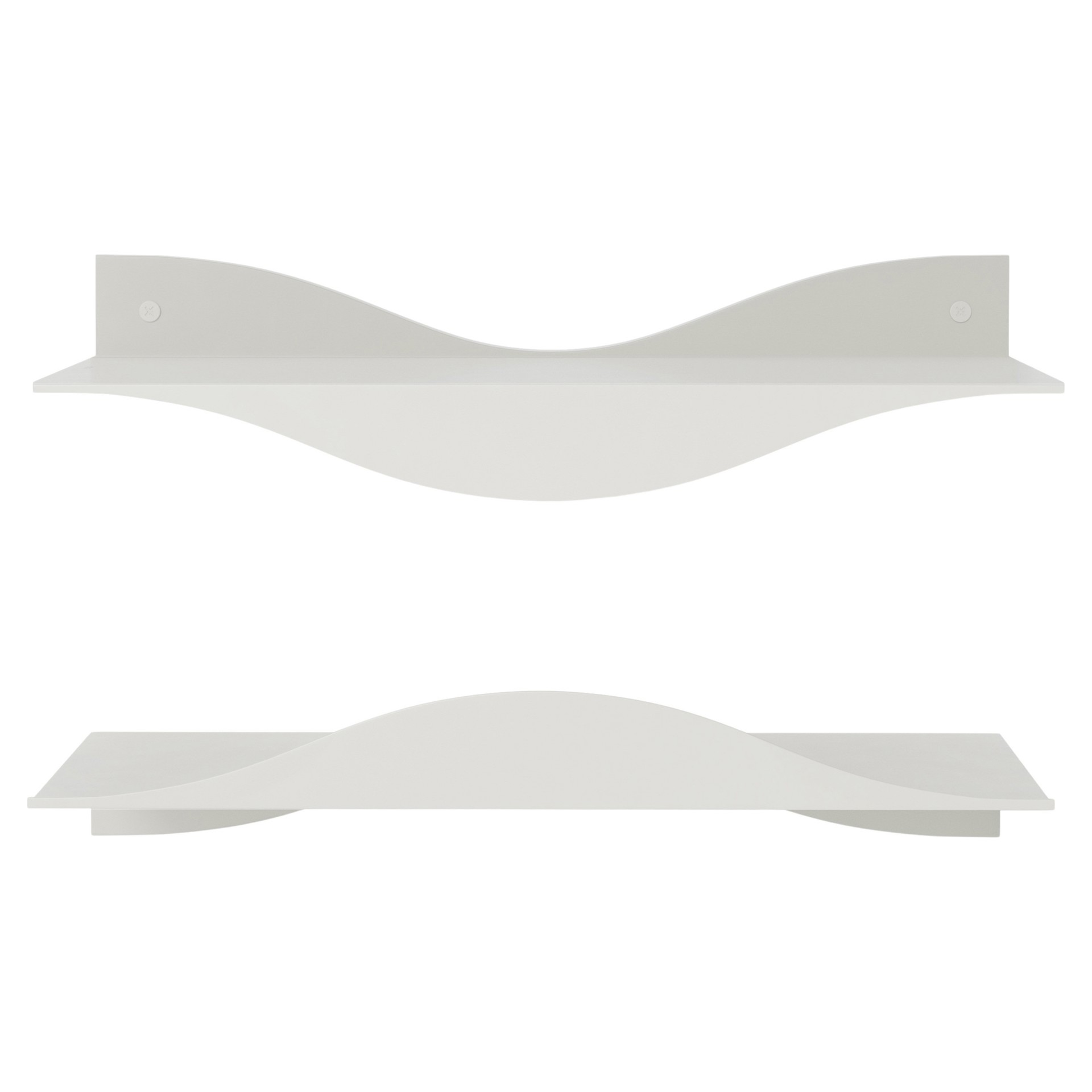 Elevate your walls with the Surf Wall Shelves, a stylish and functional set of two powder-coated metal shelves that bring a subtle, wave-like flow to your space.