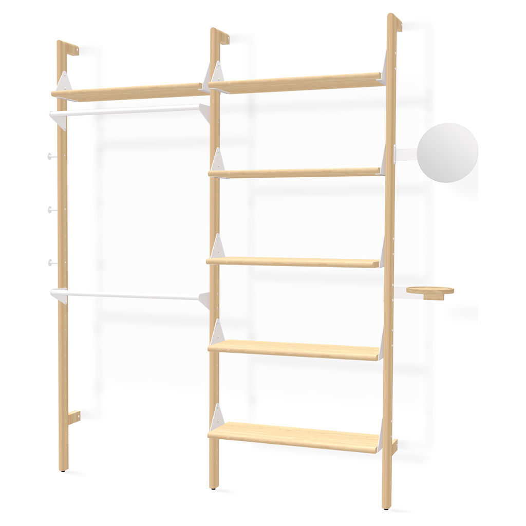 • Consisting of : 2 branch uprights, 6 shelves, 2 hanging bars, 1 side mirror, 1 side tray and a set of 3 single hooks.