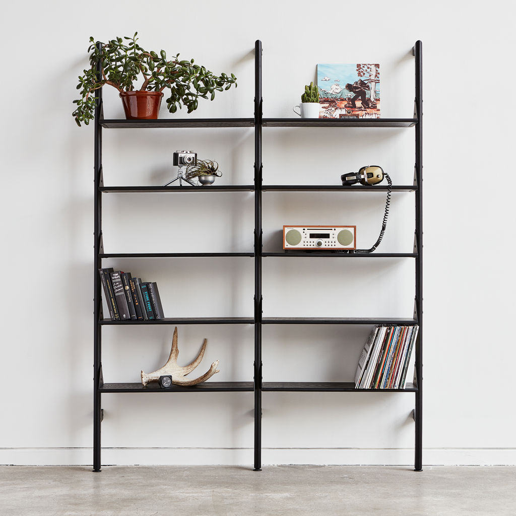 The Branch shelving system combines mid-century style with modular components that give you an infinite number of elegant, open storage options for the home or office. The design features different shelf configurations that can be transformed into a seamless workspace with the addition of a desk unit.