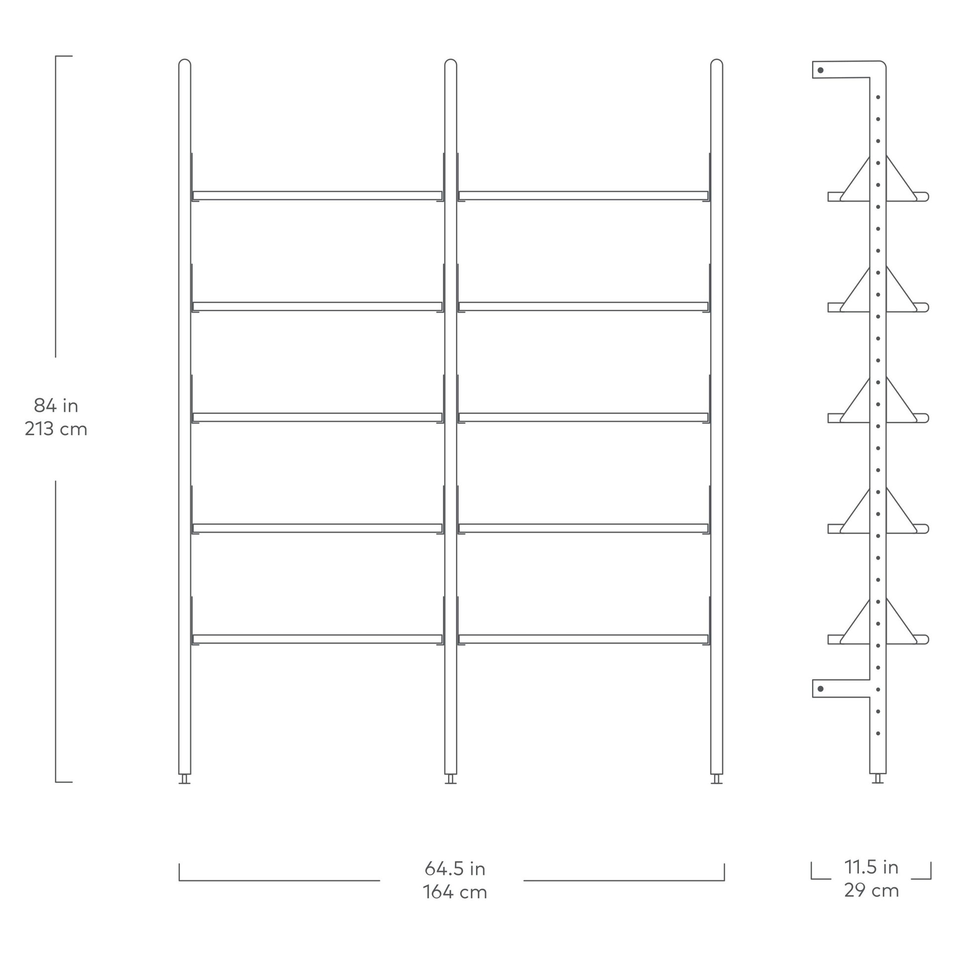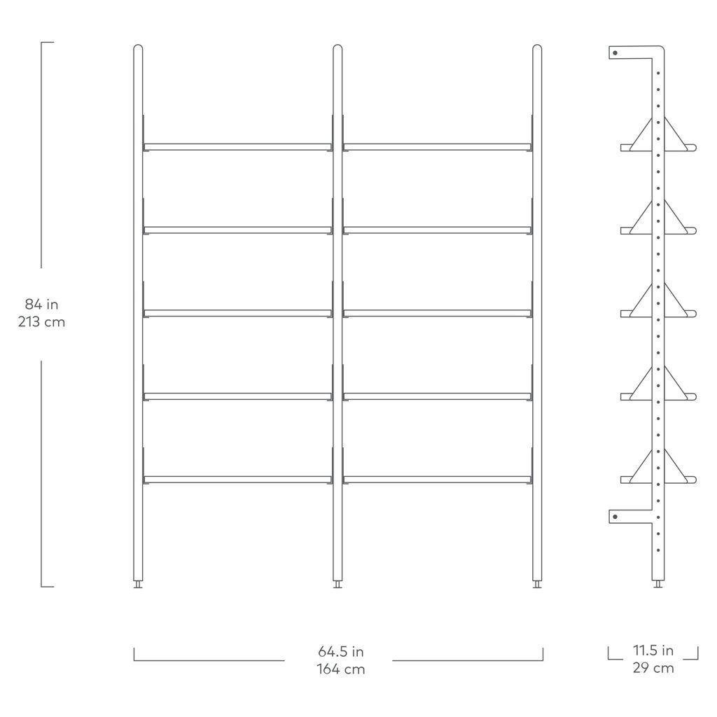 Additional units allow you to customize the size and layout of your shelving system to perfectly suit your space, and the shelves are height-adjustable to suit any arrangement of decorative objects or resources. Refined details, such as the rounded edges of the shelves and uprights, soften Branch's aesthetic and enhance its architectural style.