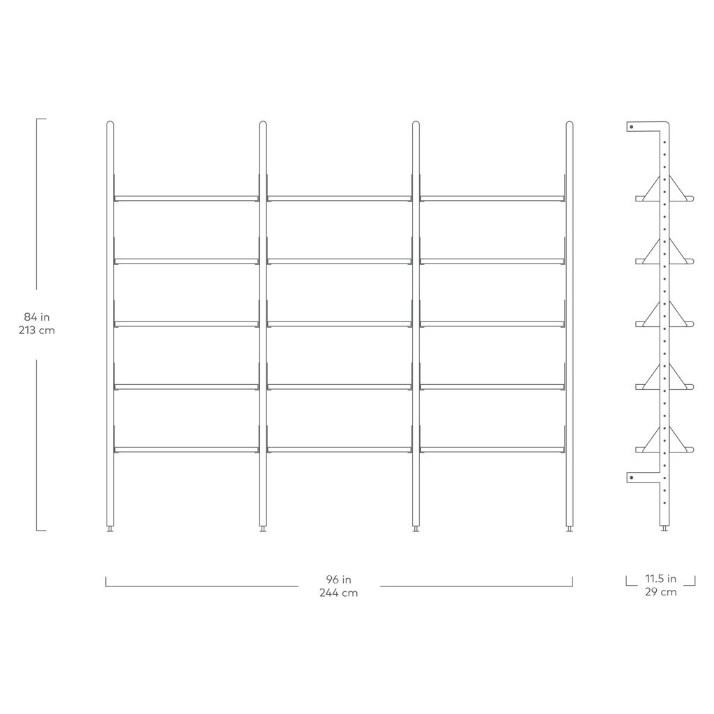 Additional units allow you to customize the size and layout of your shelving system to perfectly suit your space, and the shelves are height-adjustable to suit any arrangement of decorative objects or resources. Refined details, such as the rounded edges of the shelves and uprights, soften Branch's aesthetic and enhance its architectural style.
