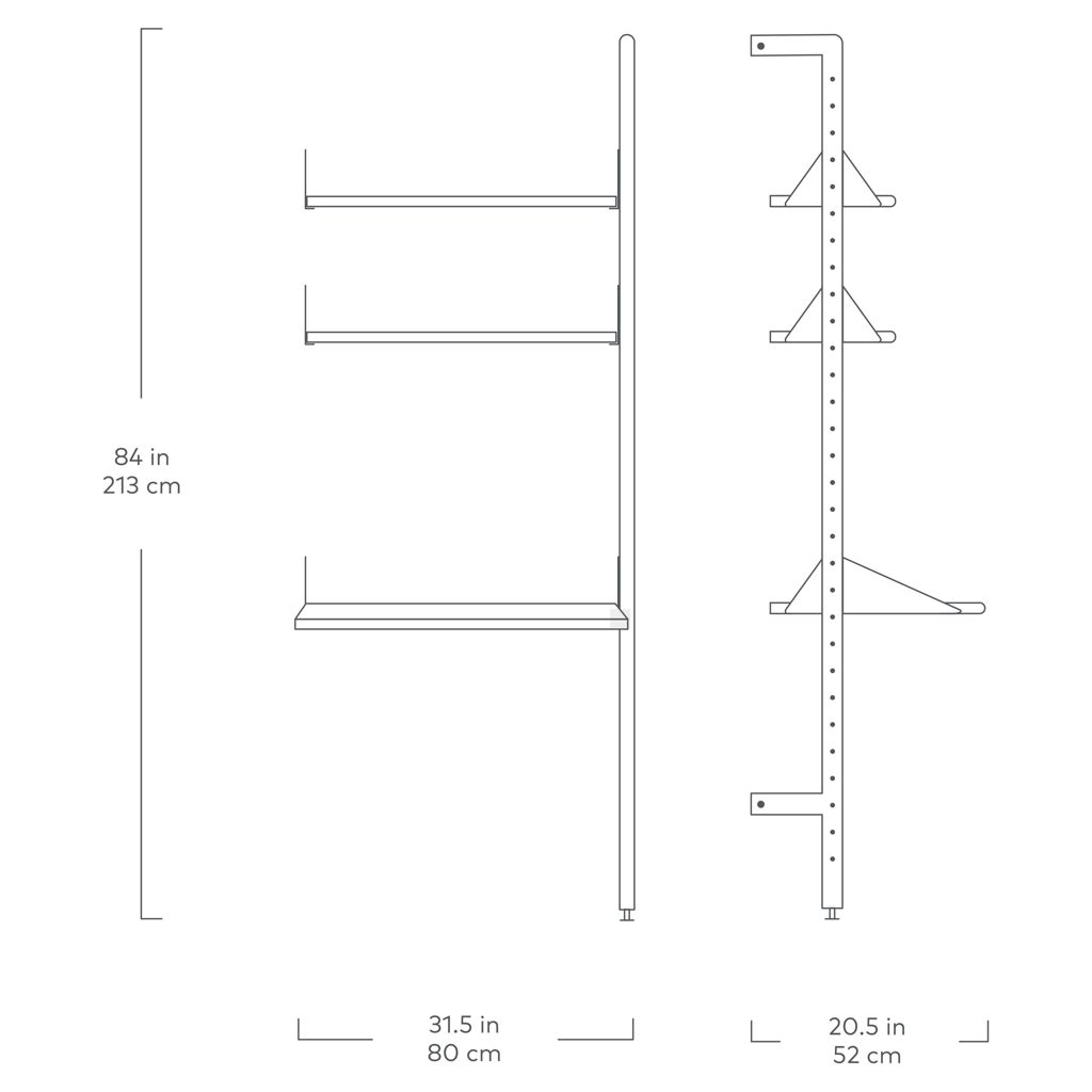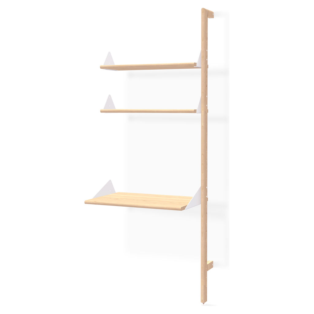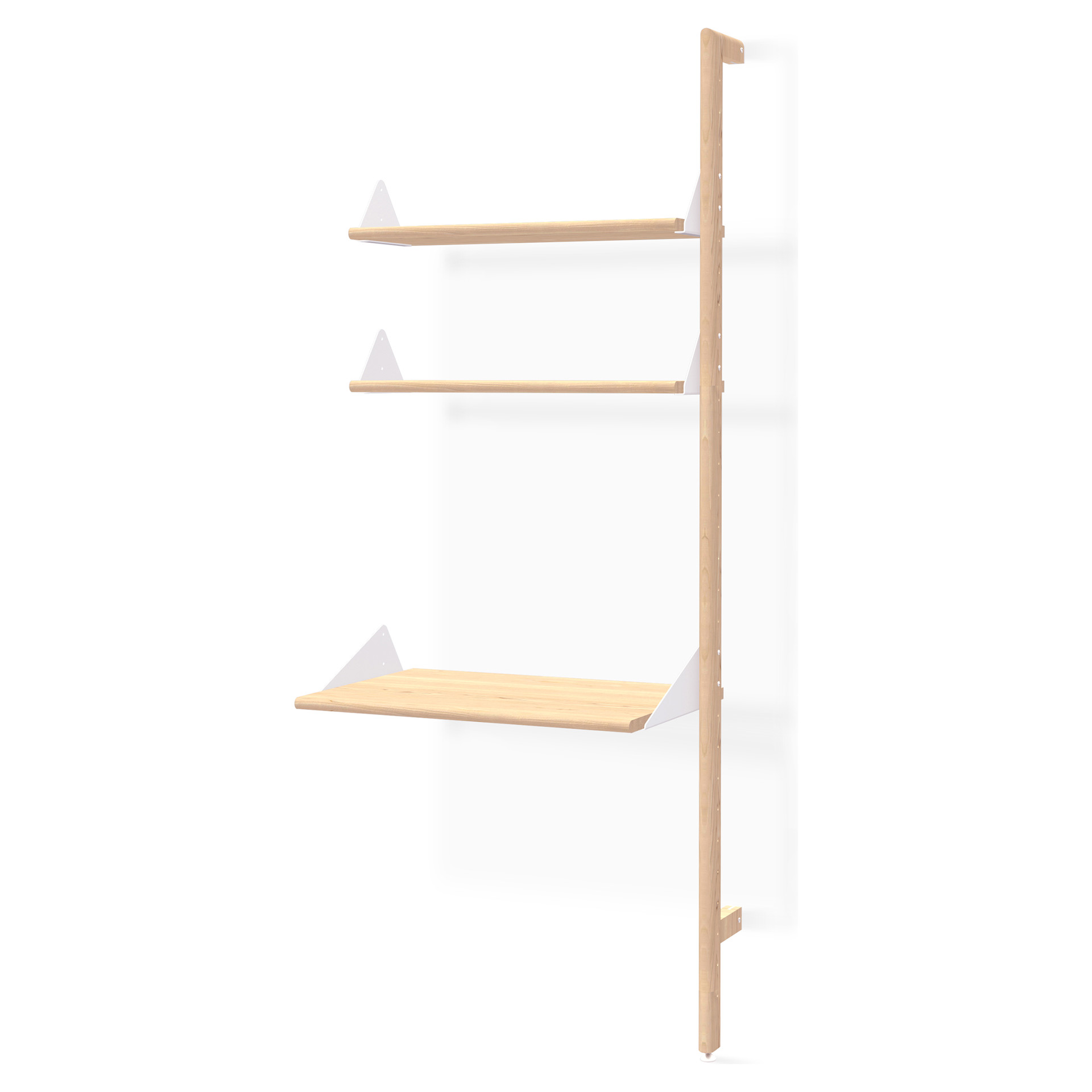 The Branch shelving system combines mid-century style with modular components that give you an infinite number of elegant, open storage options for the home or office. The design features different shelf configurations that can be transformed into a seamless workspace with the addition of a desk unit.