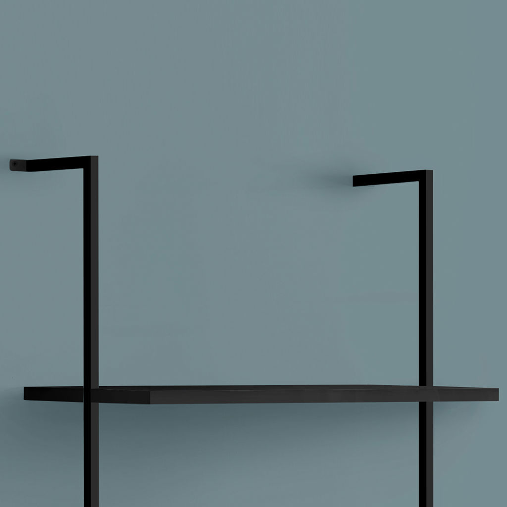 This charming minimalist ladder bookcase is a great way to bring an industrial style to your decor. It is made with a black metal frame with a rustic look. It mounts on the wall to stay in place.