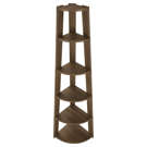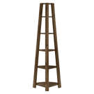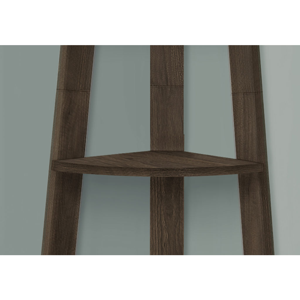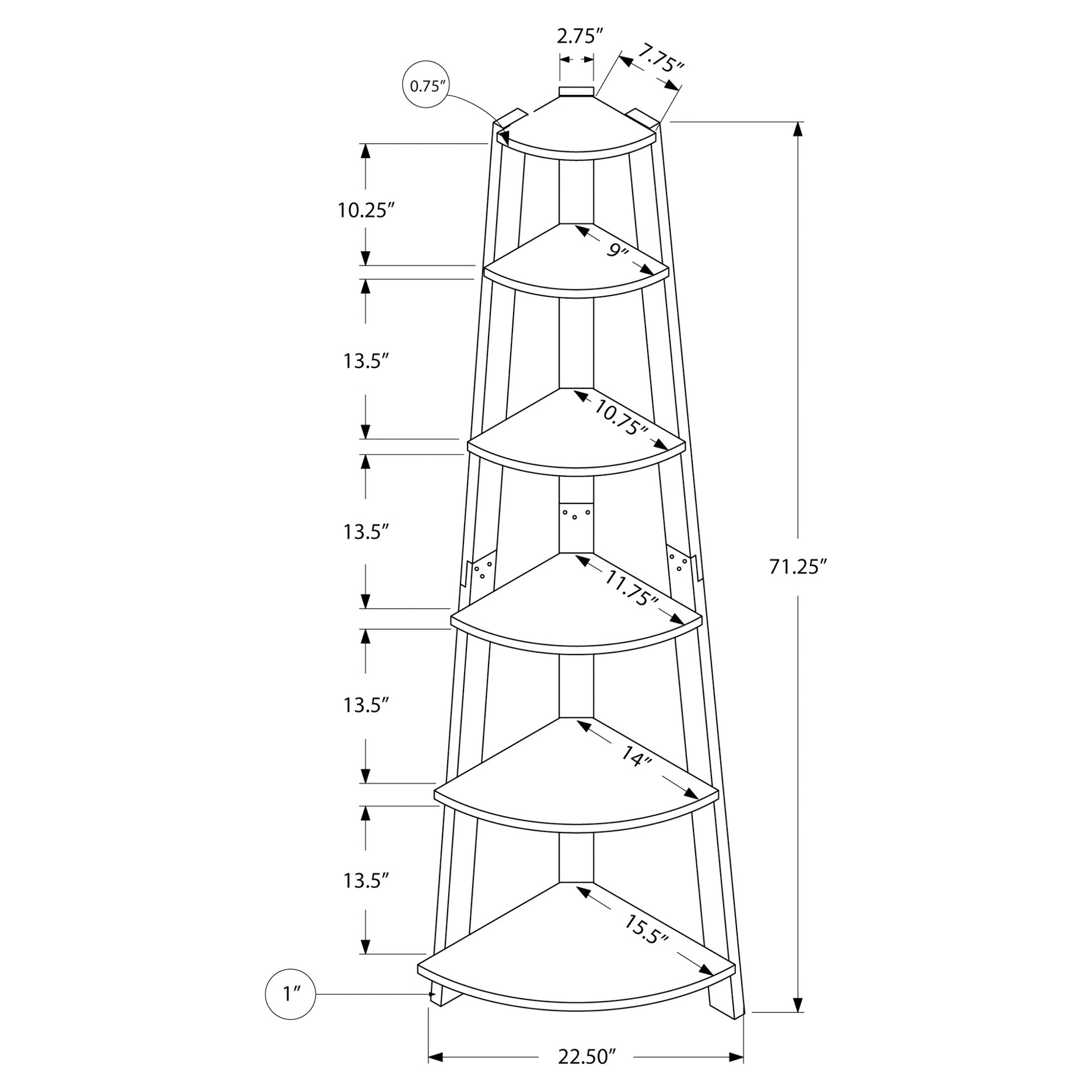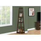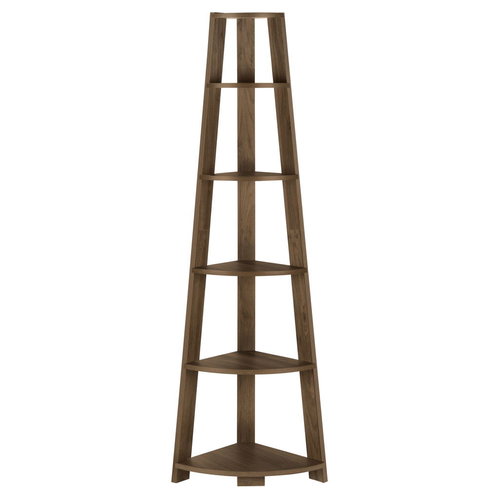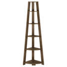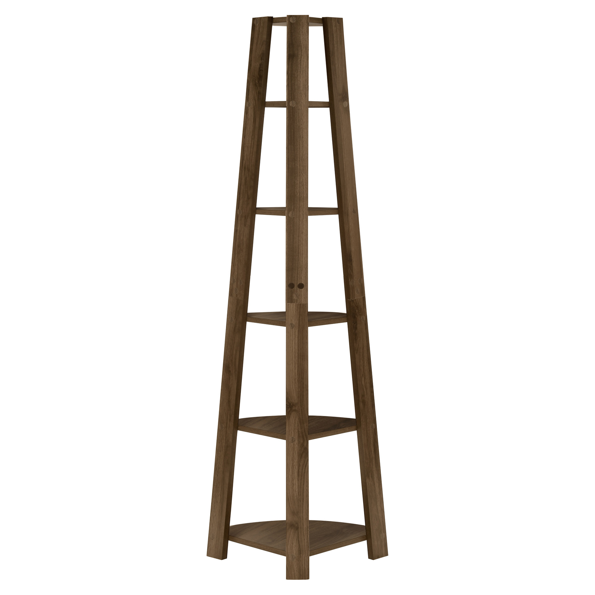 Set up this bookshelf with ease and let it take care of your space. Enjoy a bookcase that fits nicely in your living room, office or bedroom, allowing you to use it for books and any type of decor. For a place that is often hard to maximize - the corner - is no longer a problem with this modern dark walnut wood-look furniture that will certainly help you utilize all the available space with 5 shelves. Three sturdy legs ensure the structural integrity of this corner shelf. Anti-tilt hardware is included for added stability.