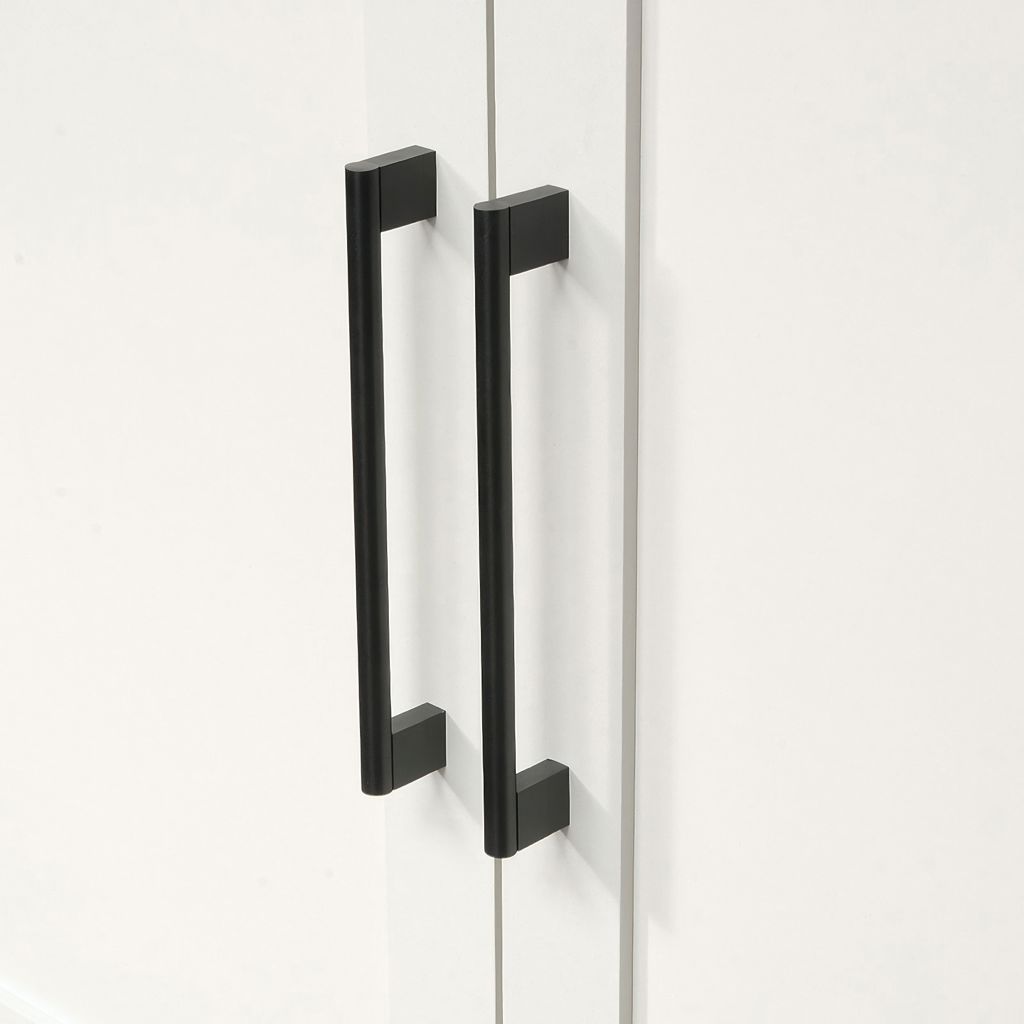 Finished in white and detailed with attractive hardware, this good-looking cabinet is the solution to your storage woes.