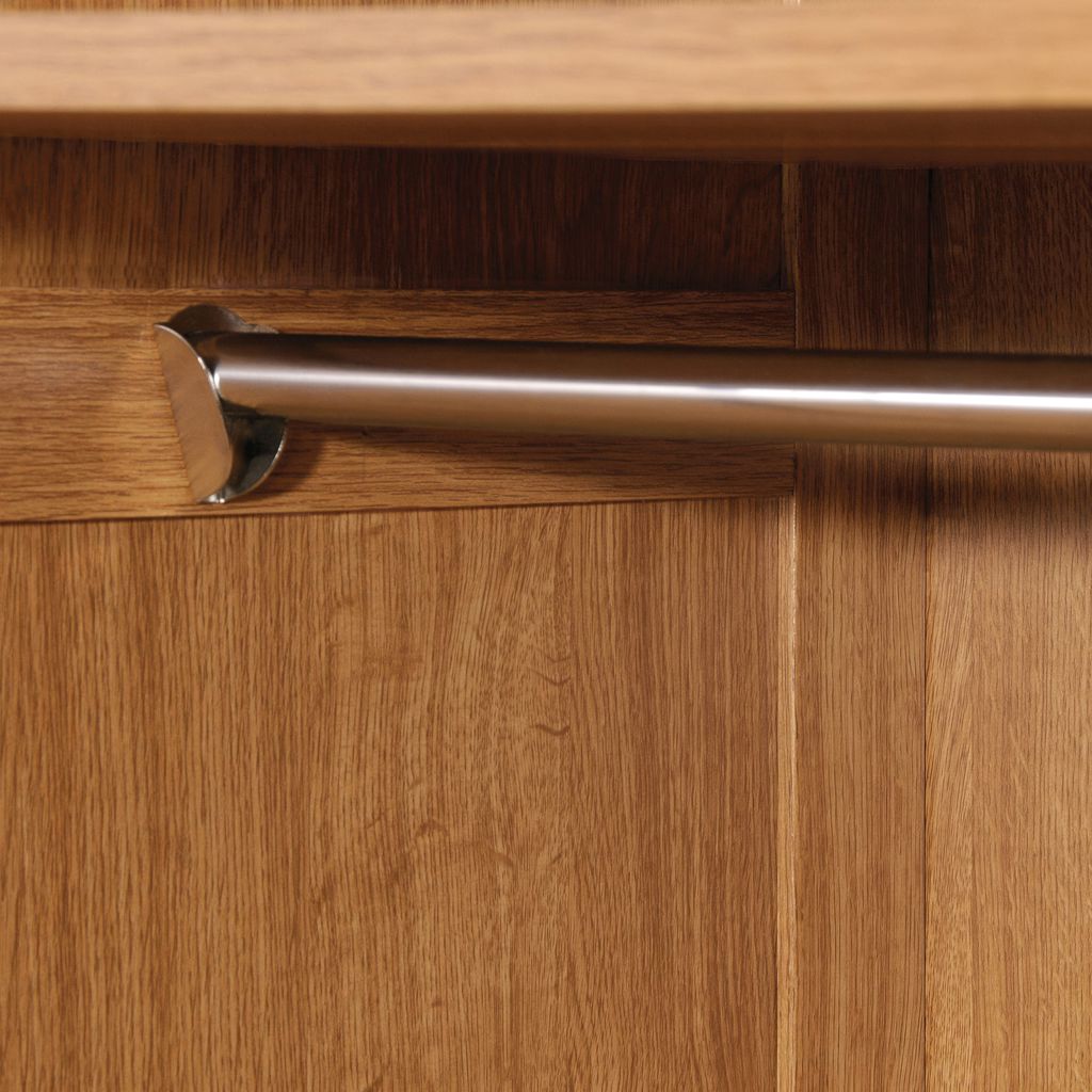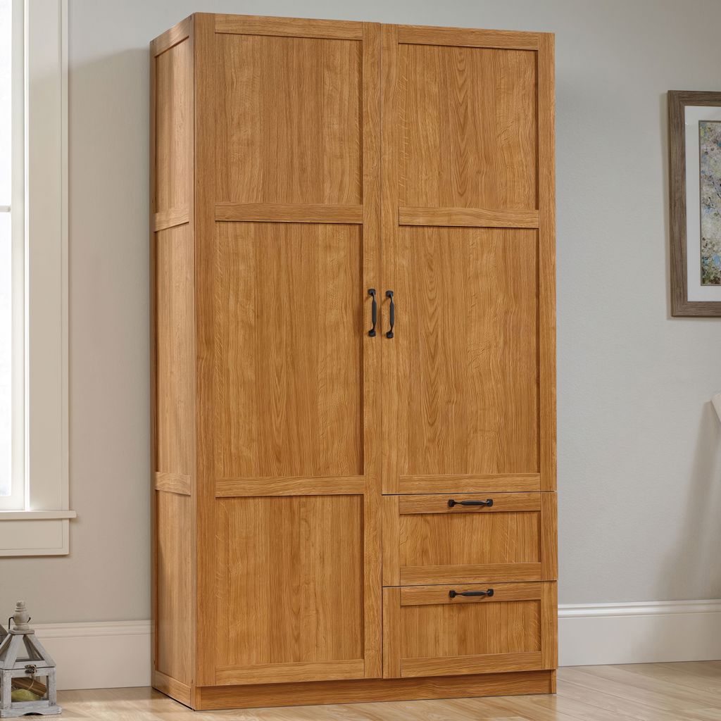 This wardrobe armoire also includes two deep storage drawers that glide on metal runners for an easy, user-friendly design.