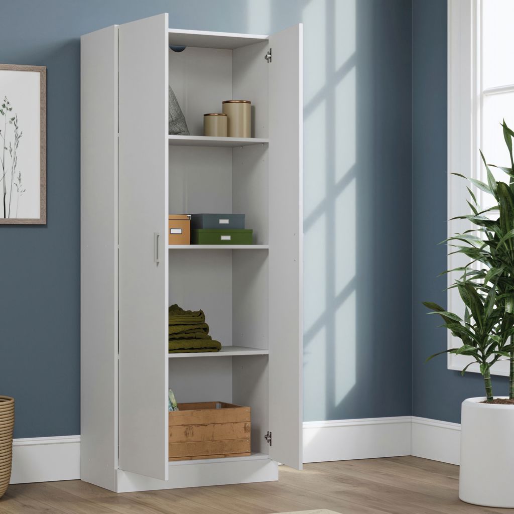 Shut the door on the clutter in your life by opening the doors of the Sauder Select storage cabinet. This two-door storage cabinet will fit into any décor in your home.