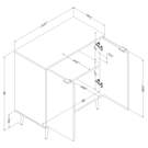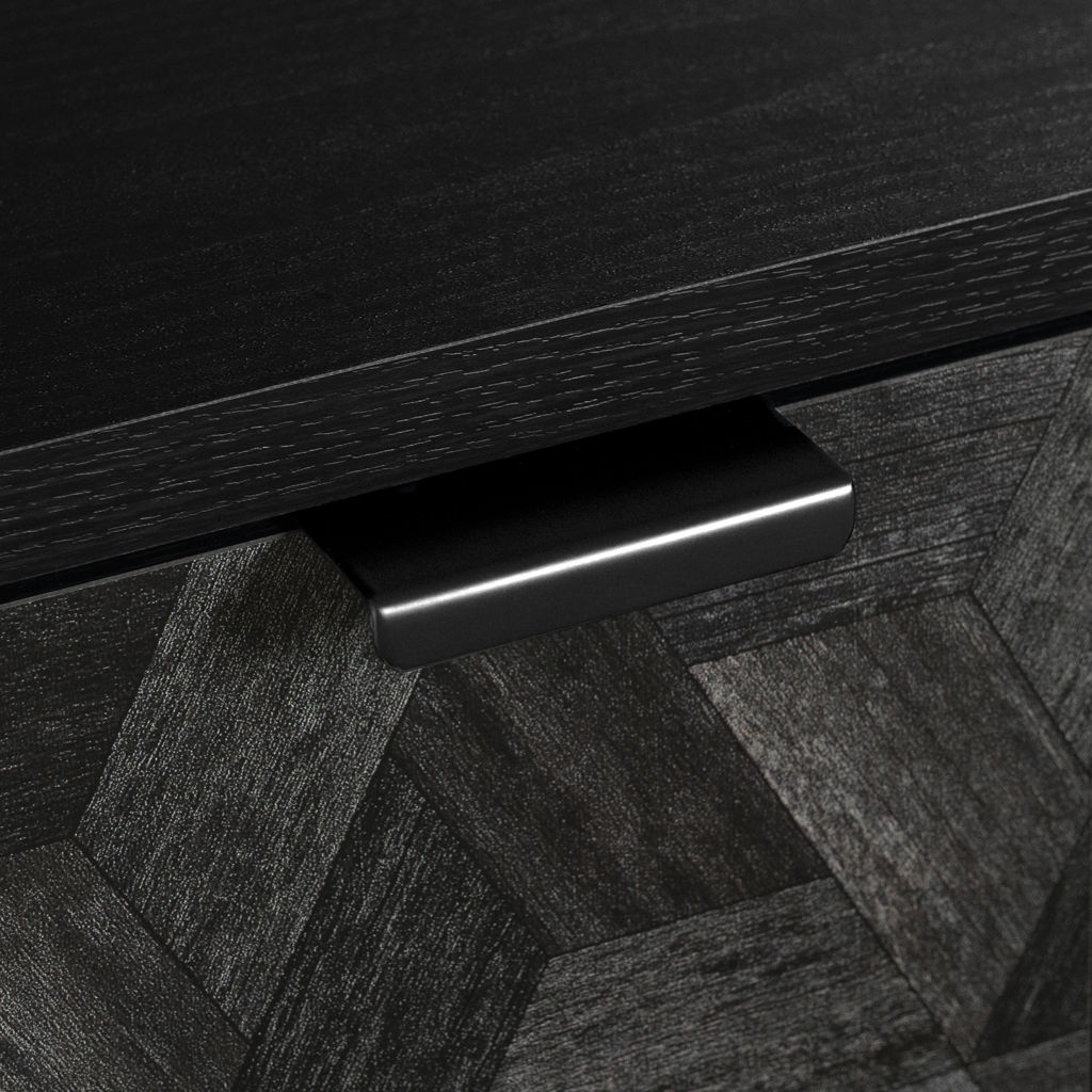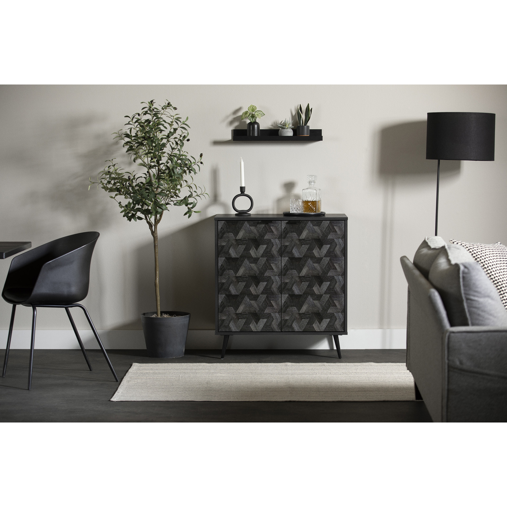 Its clean design, accentuated by a dynamic pattern on the front doors, creates a visual effect that stands out for its originality. The metal legs and handles reinforce its contemporary look, while the finished back offers the freedom to plate it anywhere be it in the dining room or as an additional piece in the living room for books and decorative items.