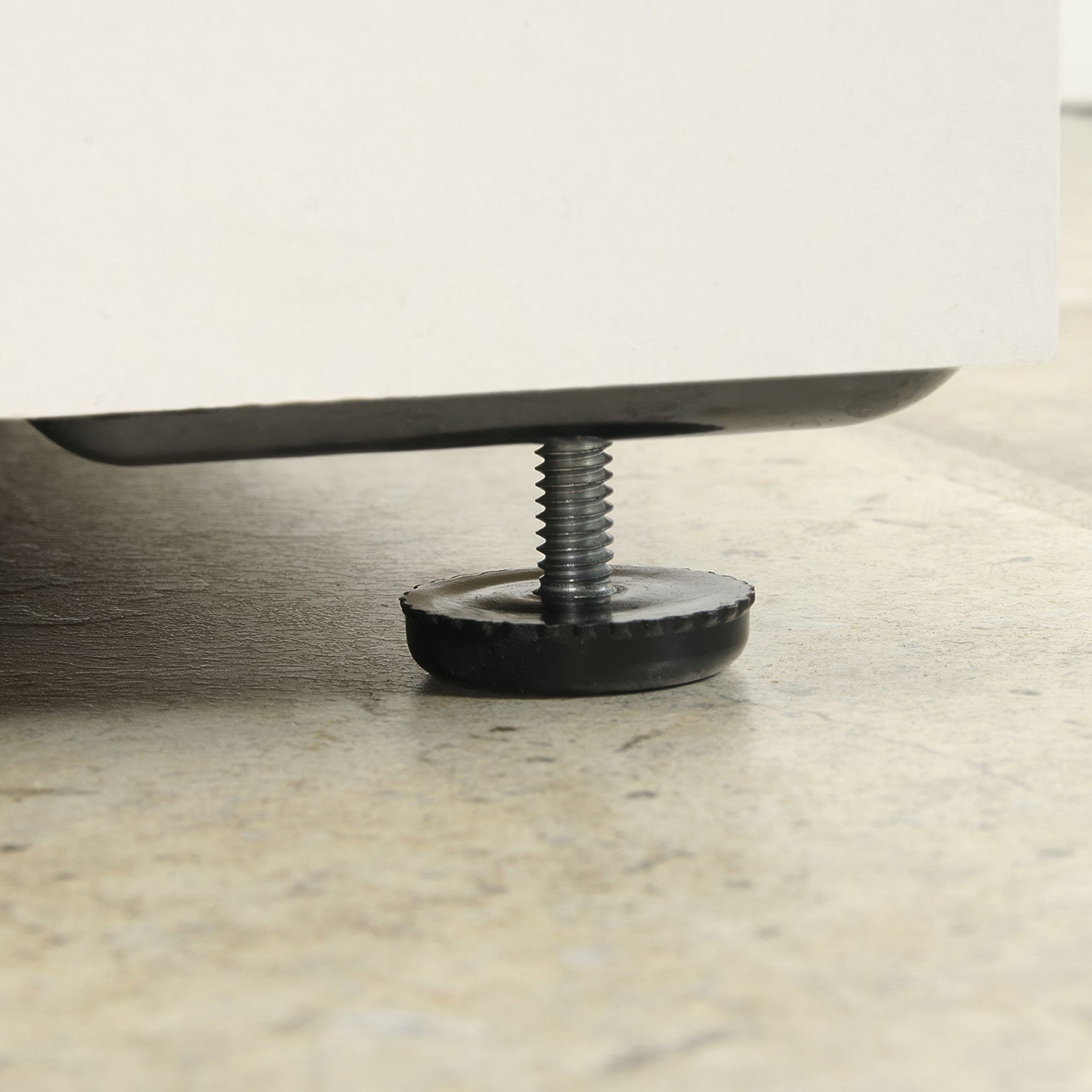 This 2-door storage cabinet features adjustable base levelers to ensure your unit is level, even if the floors are not. Finished in Sienna Oak®, this engineered wood storage cabinet adds style and functionally to the home office or the laundry room.