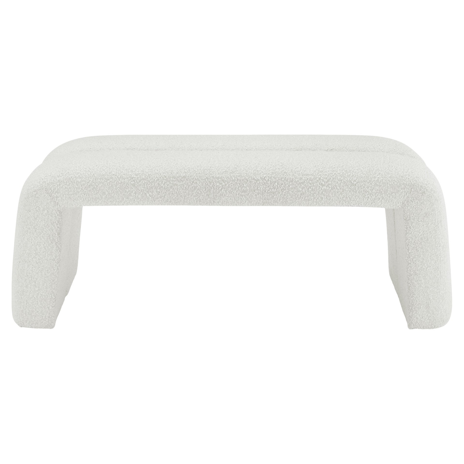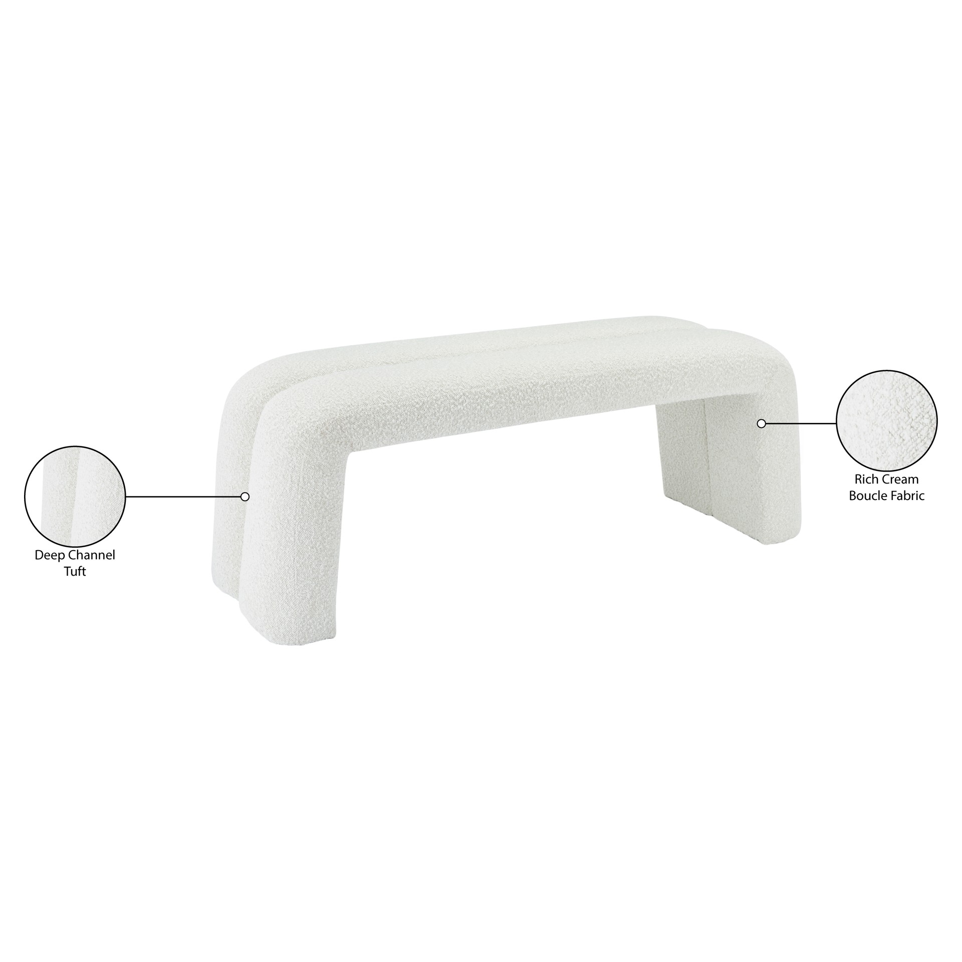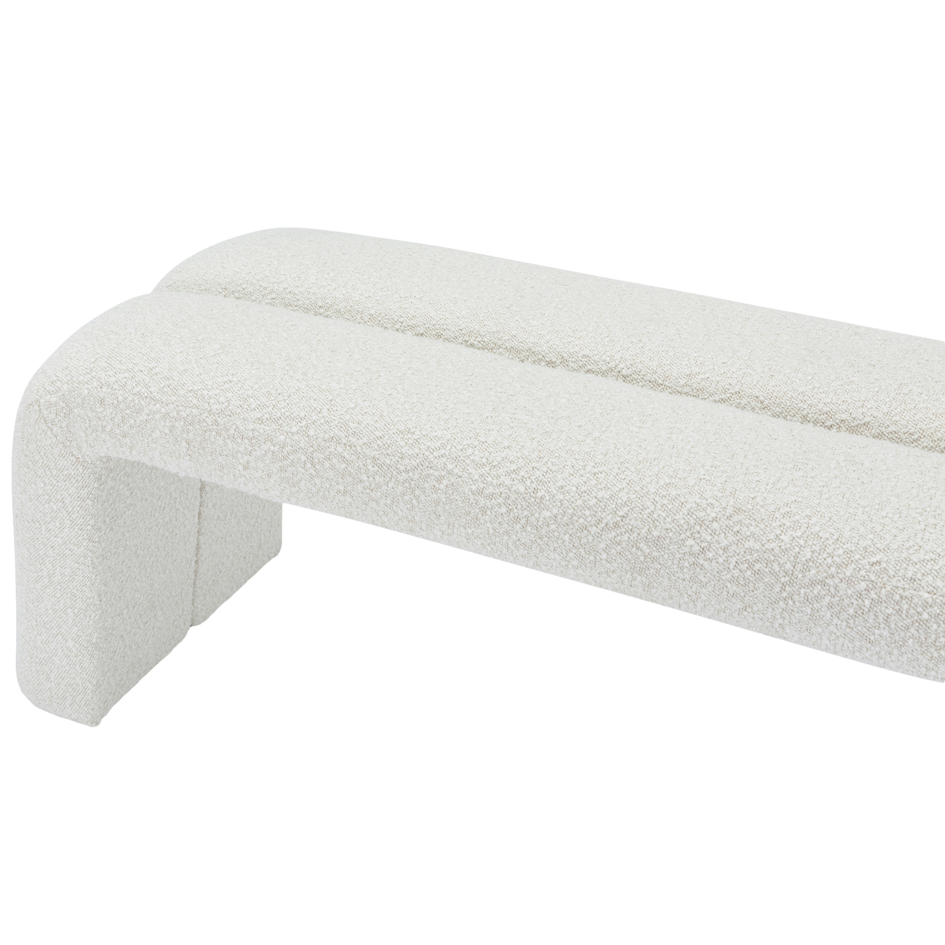 Add impromptu seating in the bedroom, foyer, or beyond with his lovely cream boucle fabric bench. This handsome bench has unexpected curves and lines that make it a true work of art in any setting. The soft boucle fabric combined with deep channel tufting make it comfortable for sitting while pulling on boots or taking off shoes in the entryway. Position it at the foot of the bed for holding blankets or other items within easy reach.