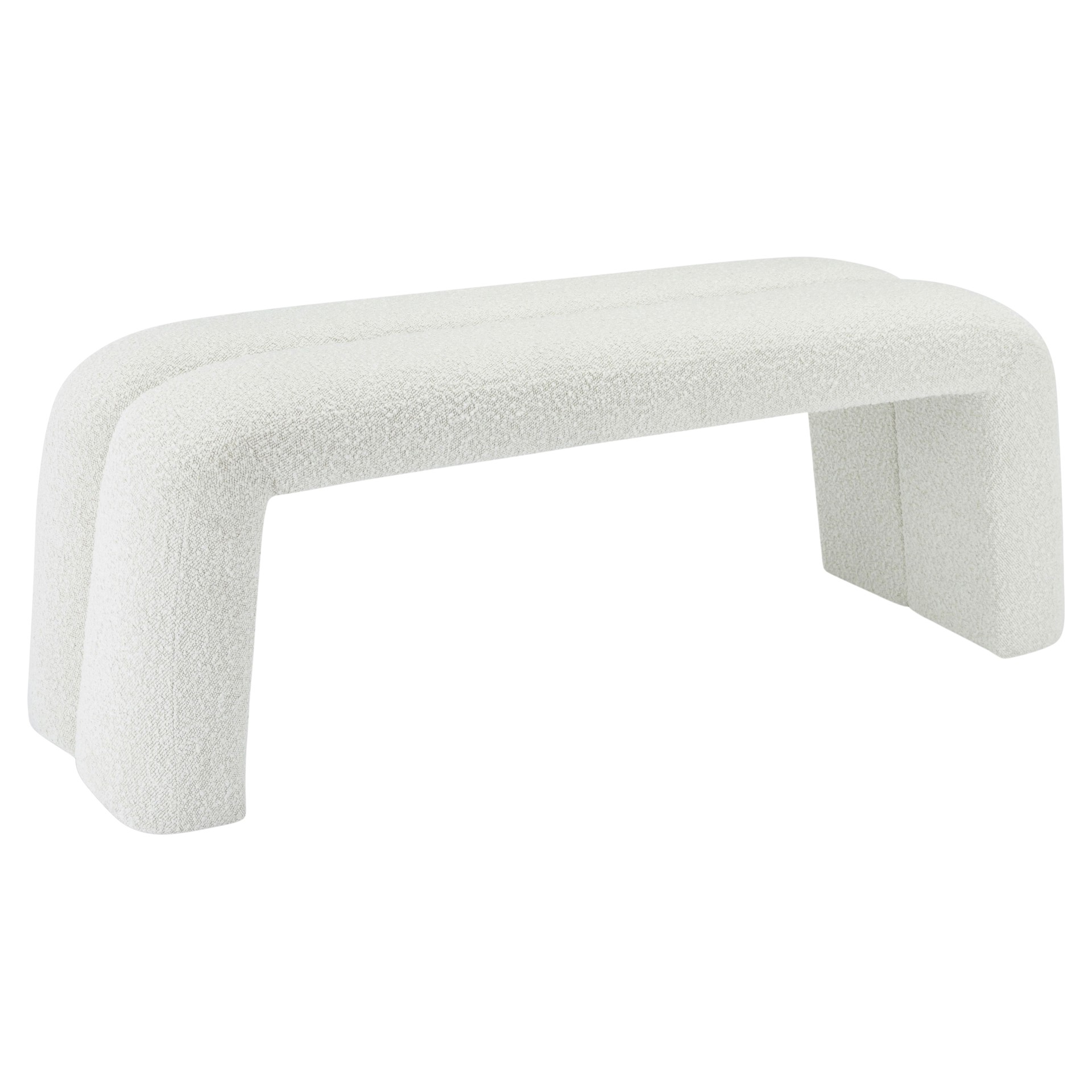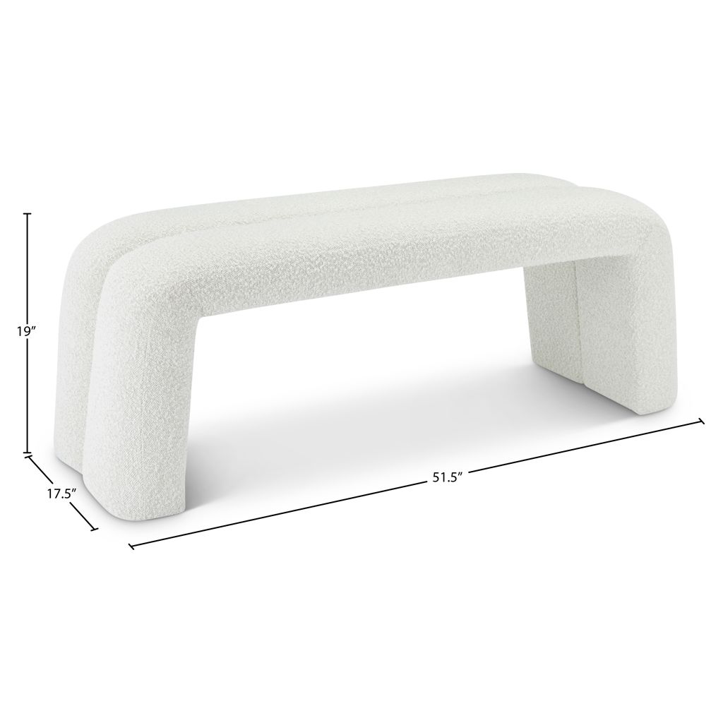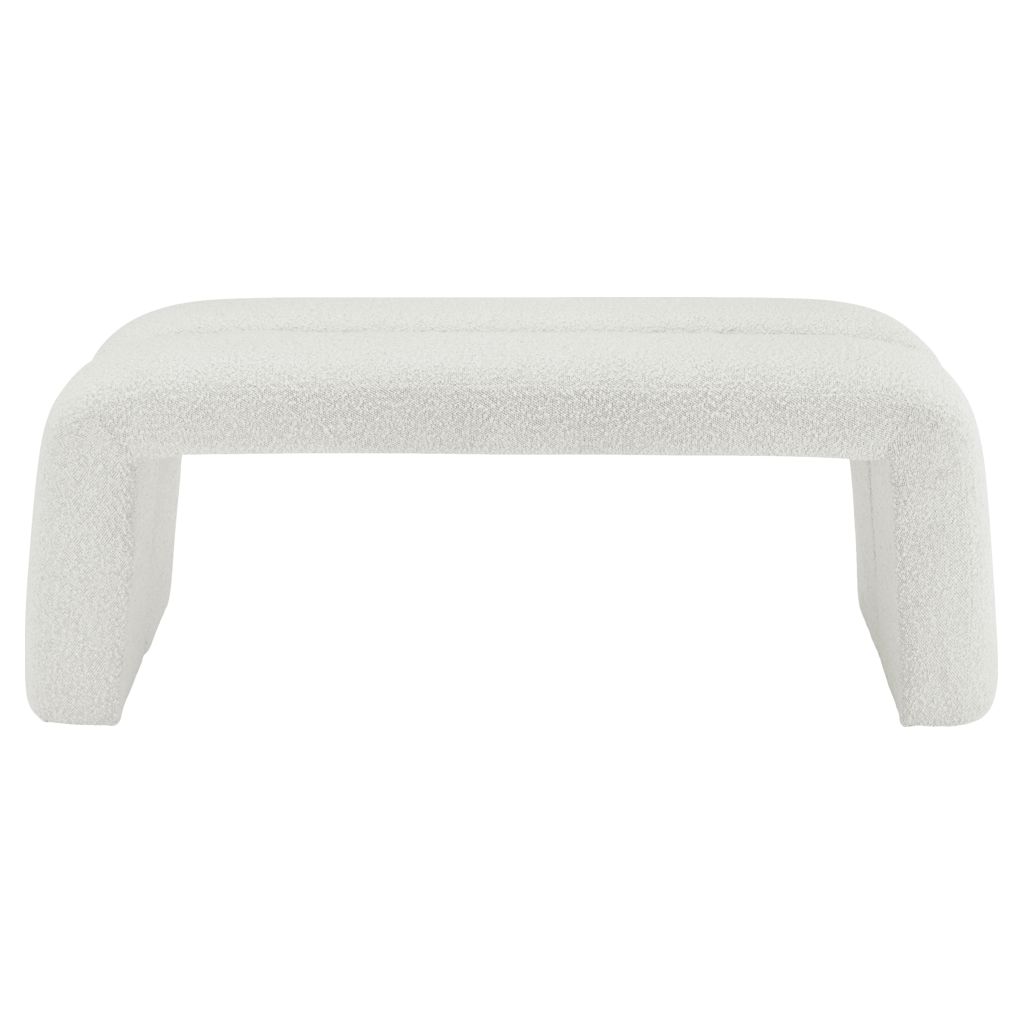 Add impromptu seating in the bedroom, foyer, or beyond with his lovely cream boucle fabric bench. This handsome bench has unexpected curves and lines that make it a true work of art in any setting. The soft boucle fabric combined with deep channel tufting make it comfortable for sitting while pulling on boots or taking off shoes in the entryway. Position it at the foot of the bed for holding blankets or other items within easy reach.