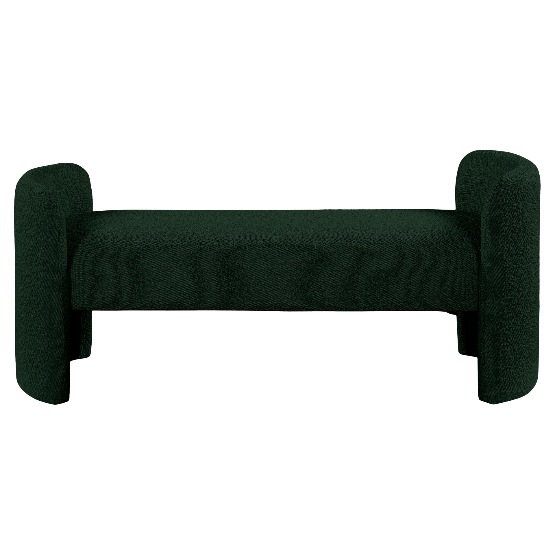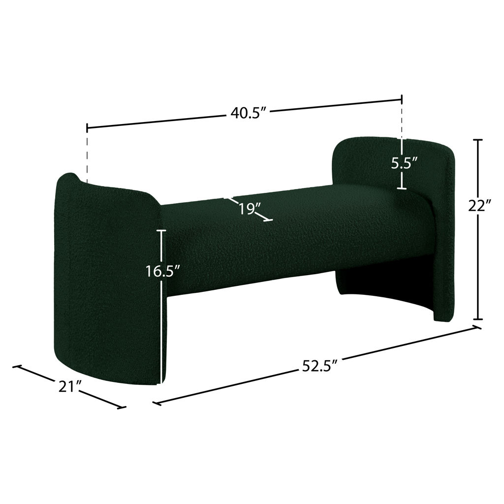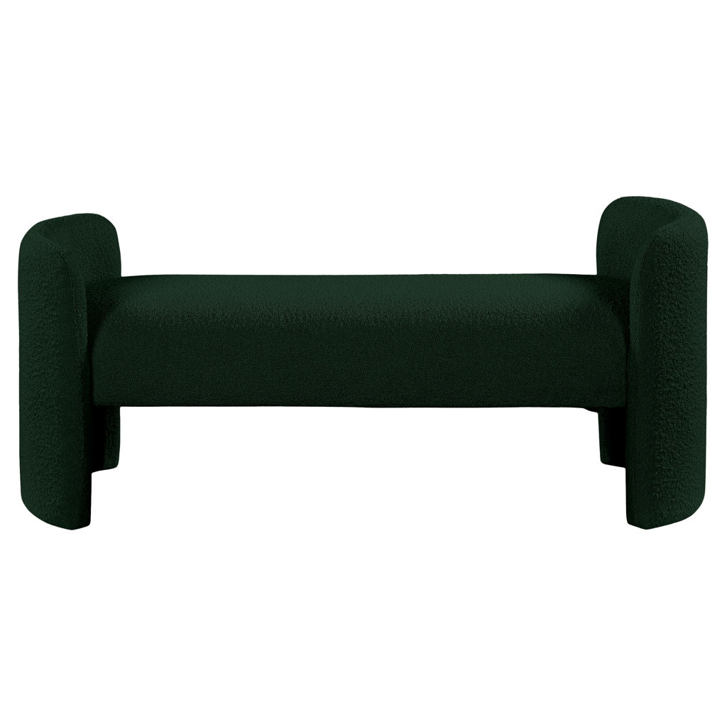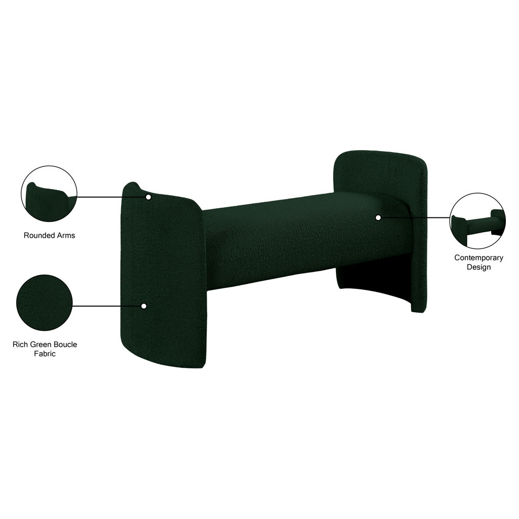 The rounded arms and the nonassuming style lend this bench an air of contemporary panache while the rich green boucle fabric lets it easily match with your room's color scheme.