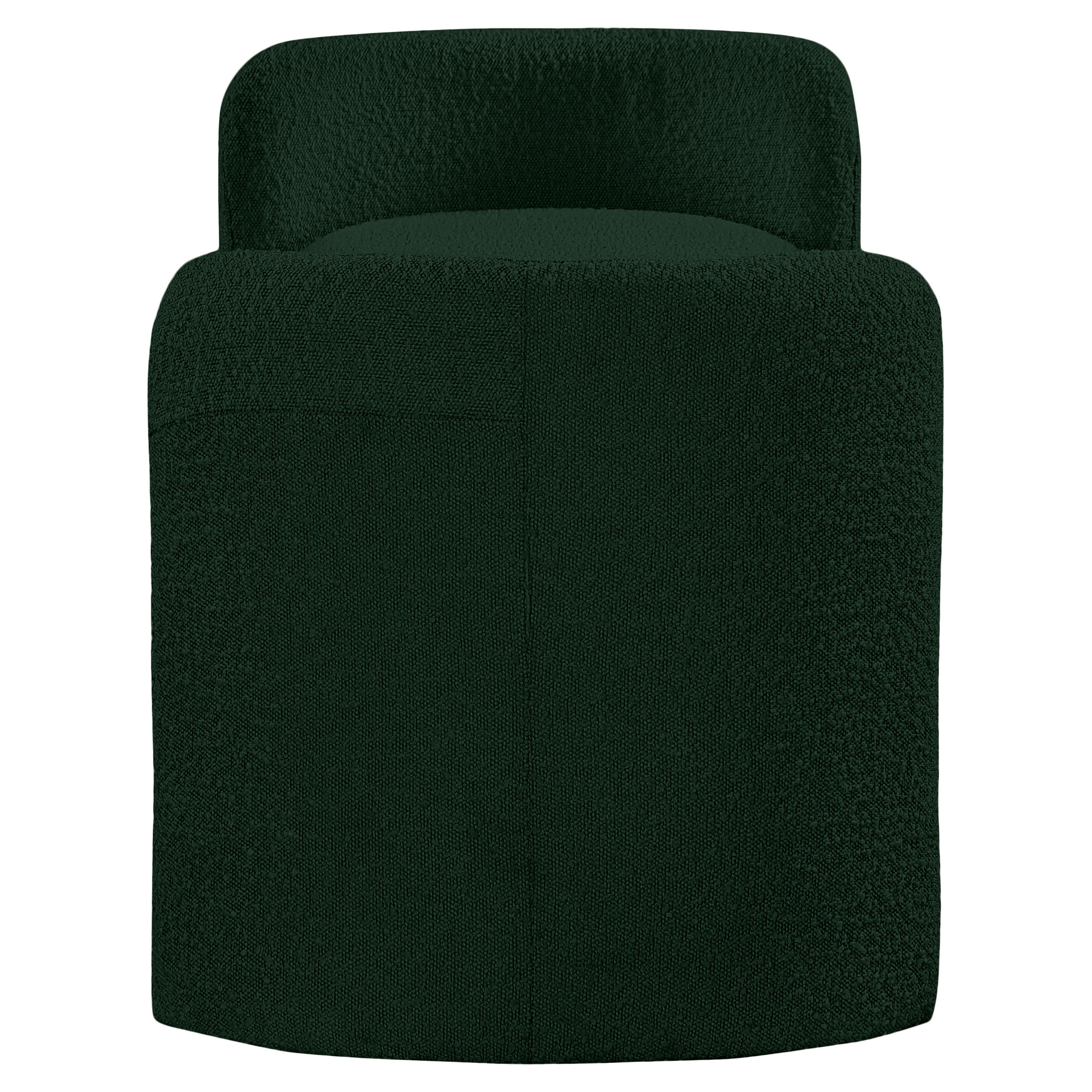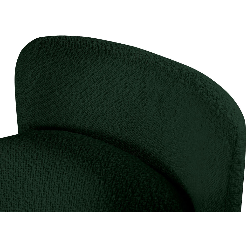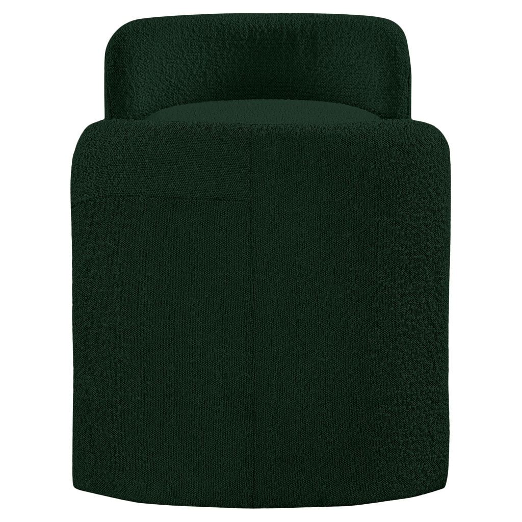 The rounded arms and the nonassuming style lend this bench an air of contemporary panache while the rich green boucle fabric lets it easily match with your room's color scheme.