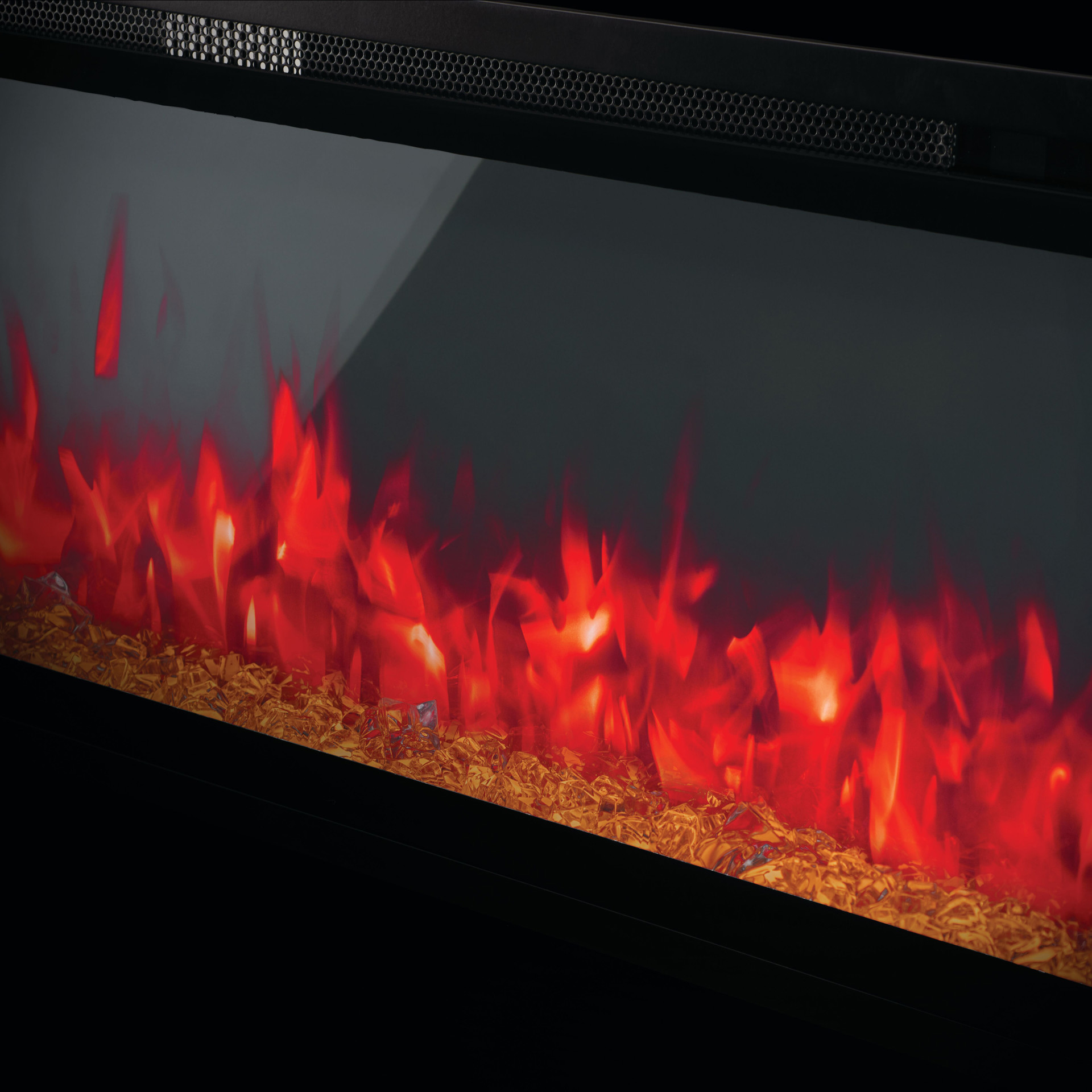 A reflective back panel creates a depth effect for the play of flames, giving you a more authentic experience without taking up more space in your room. For a more seamless look, this electric fireplace can be fully or partially recessed into a wall.