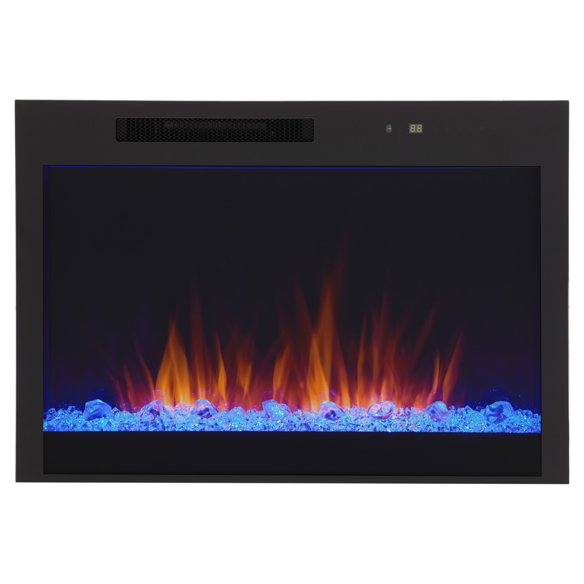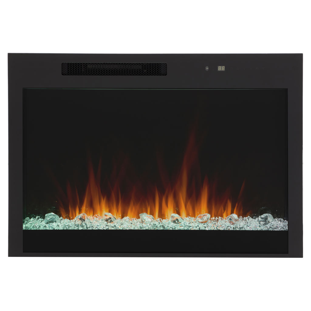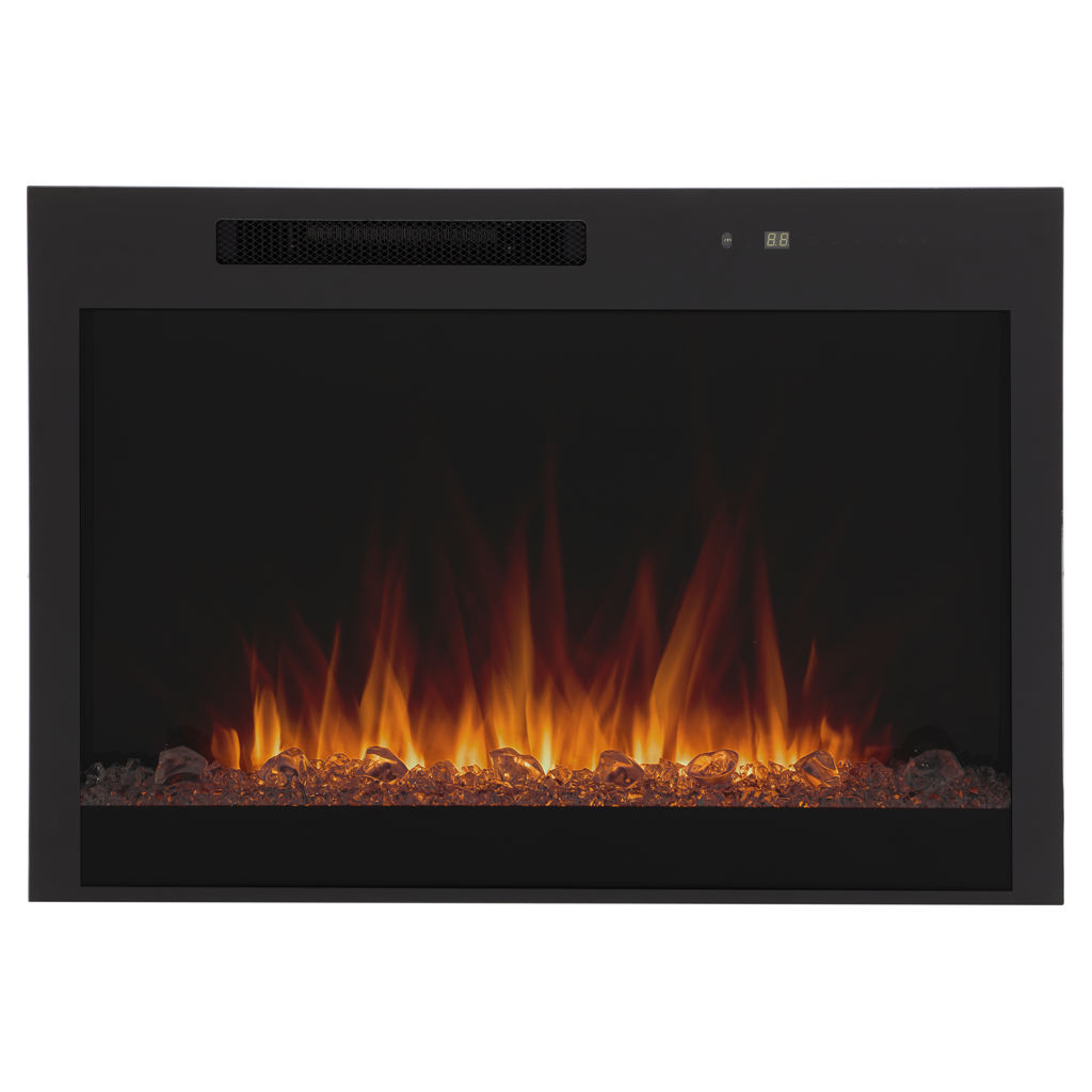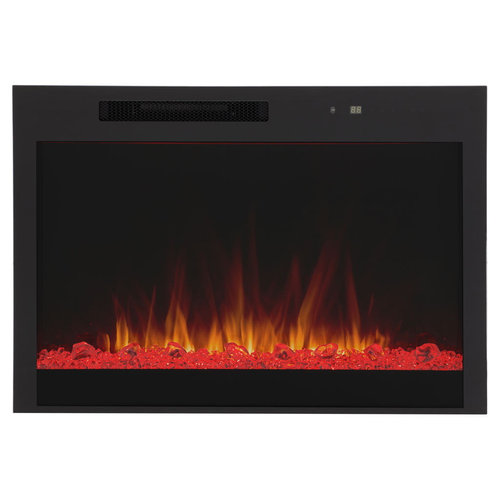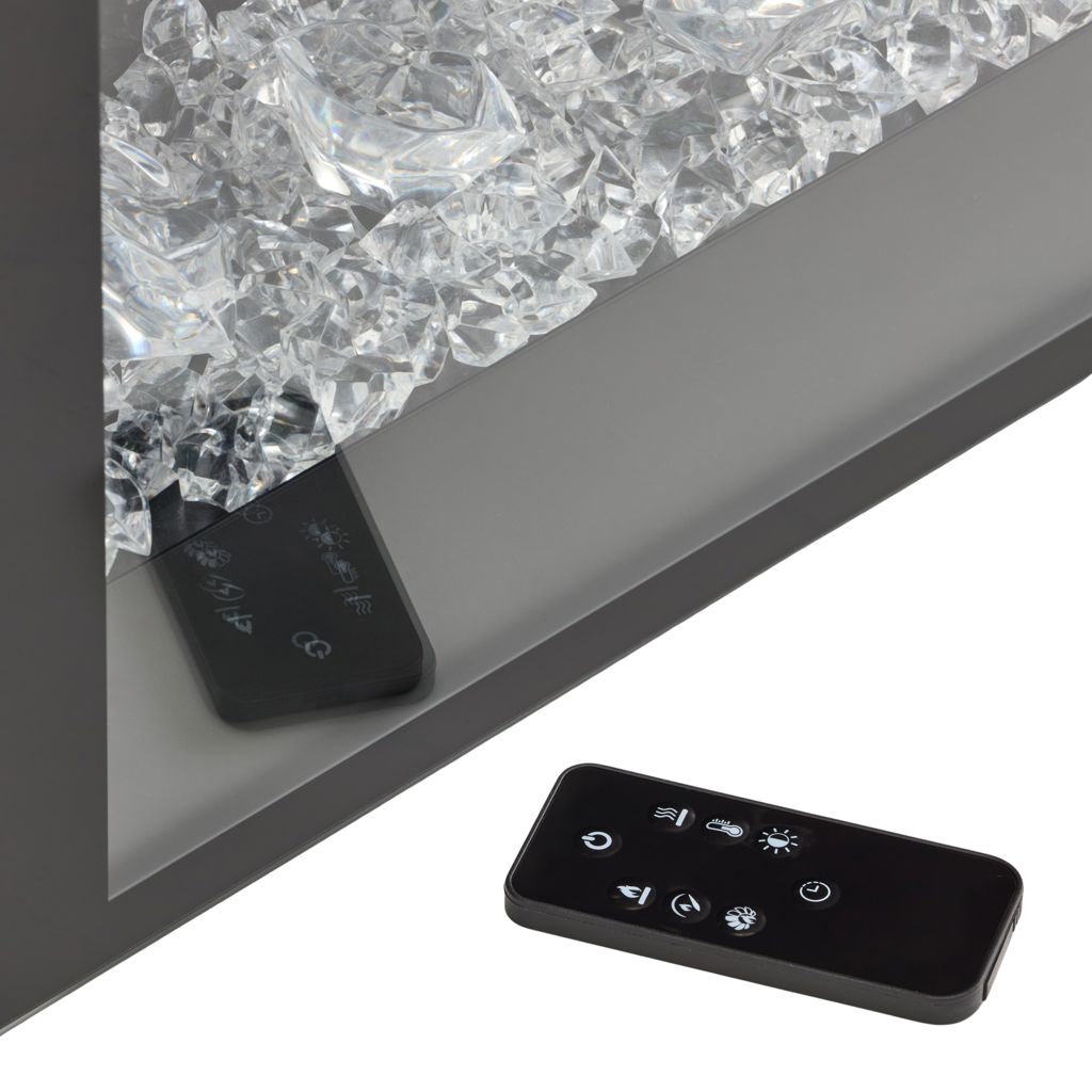 The remote control gives you full control of the fireplace, easily adjusting flame intensity and color, ember bed color, brightness, blower, heat output and timer.