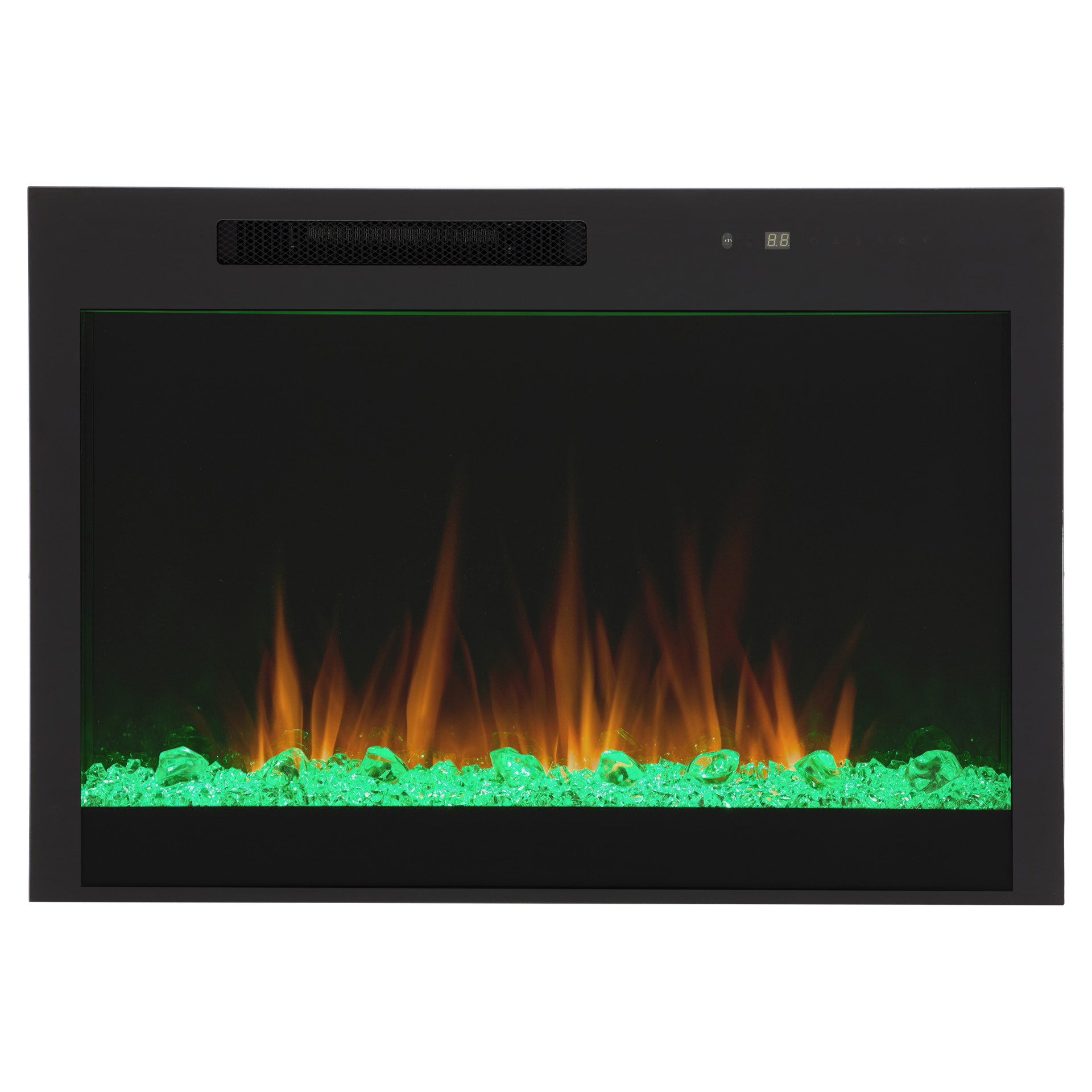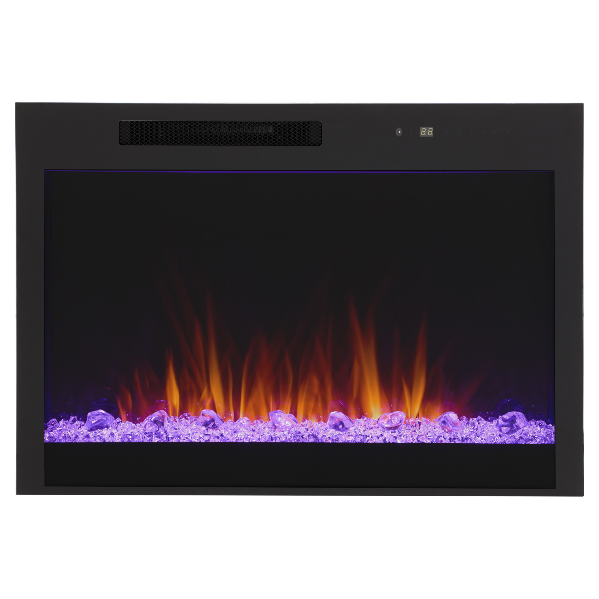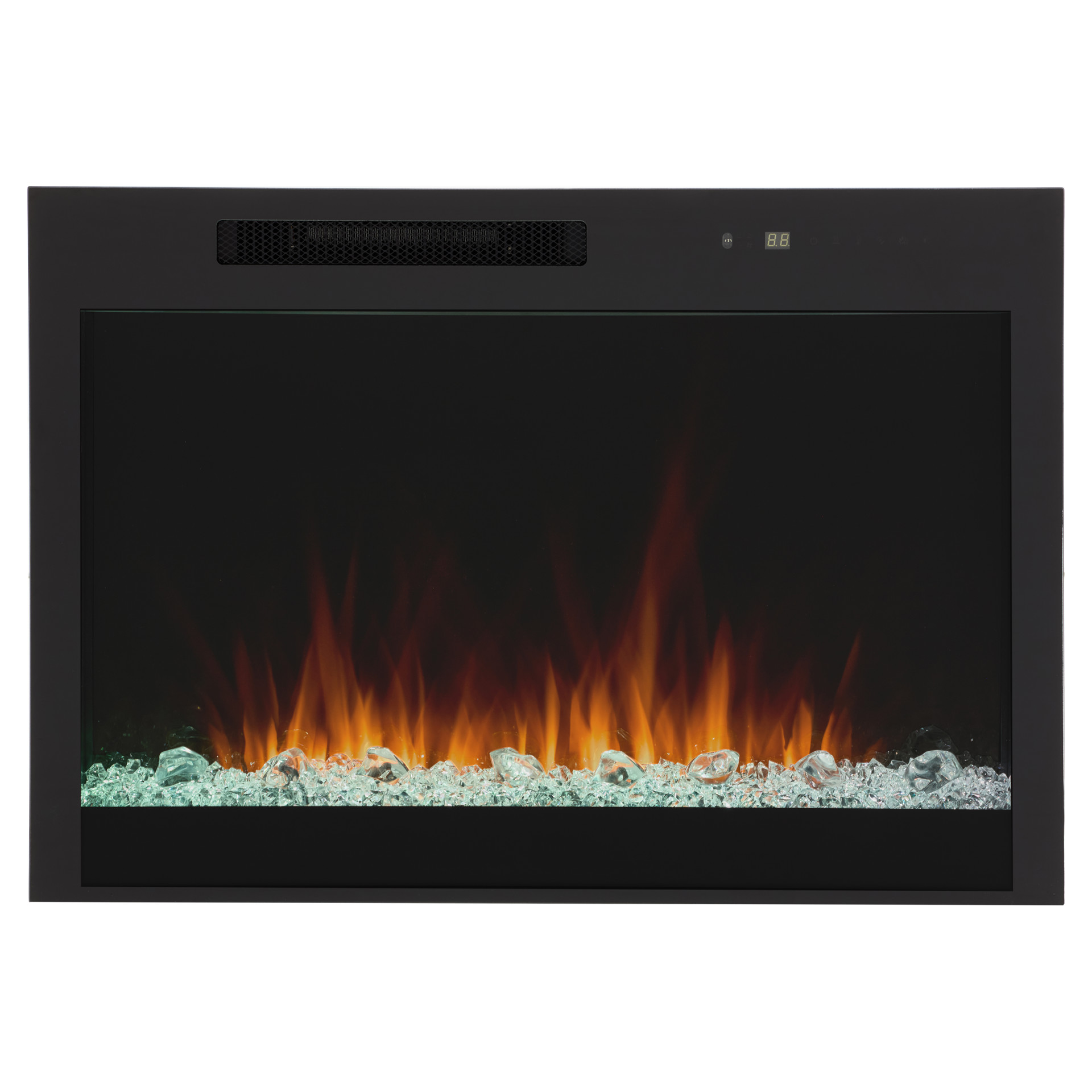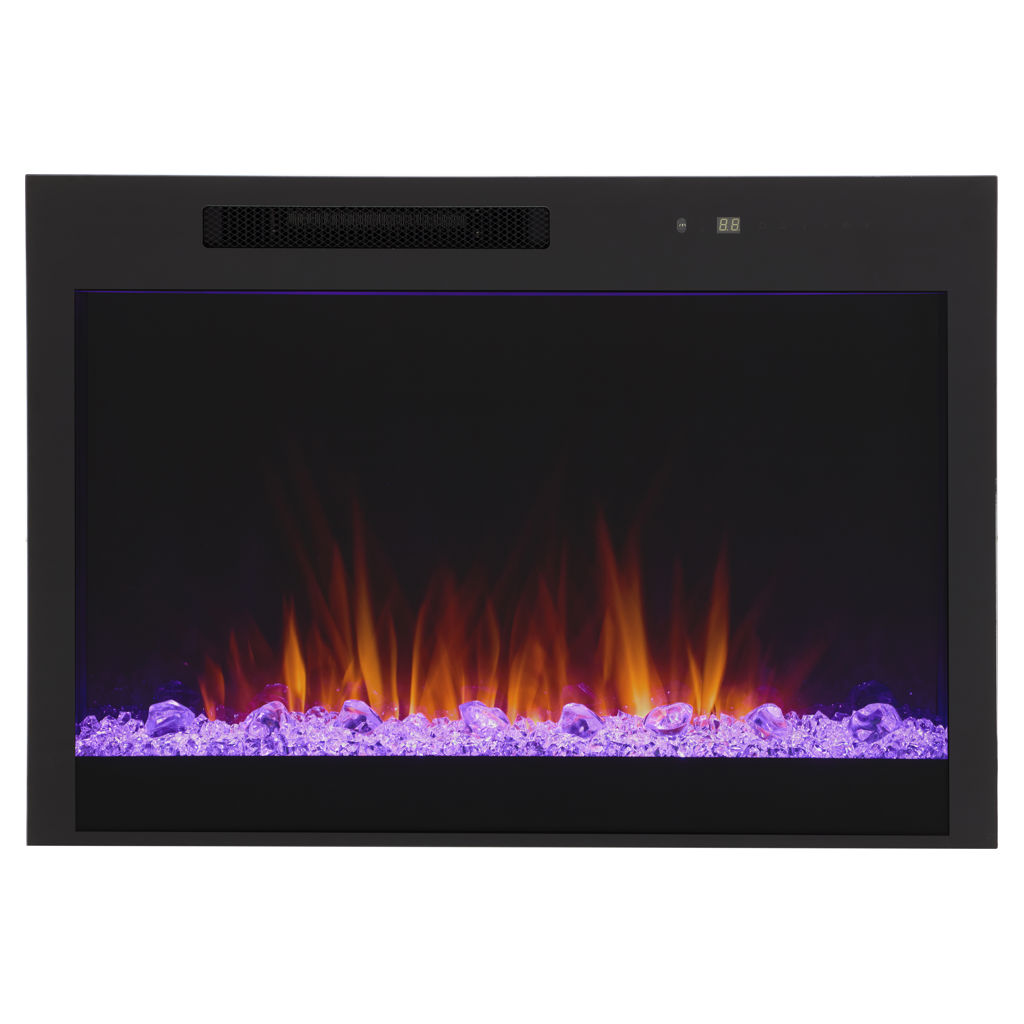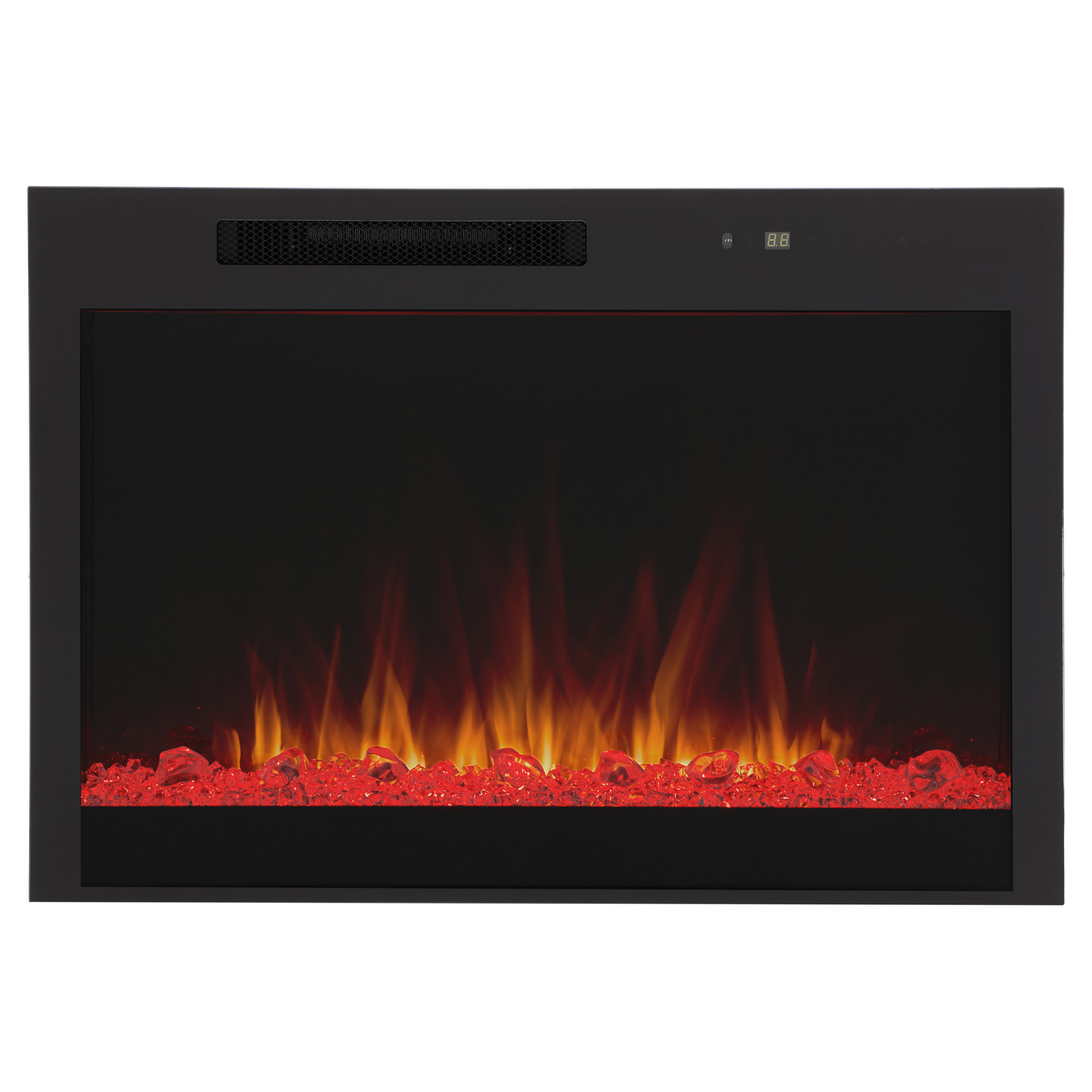 The remote control gives you full control of the fireplace, easily adjusting flame intensity and color, ember bed color, brightness, blower, heat output and timer.