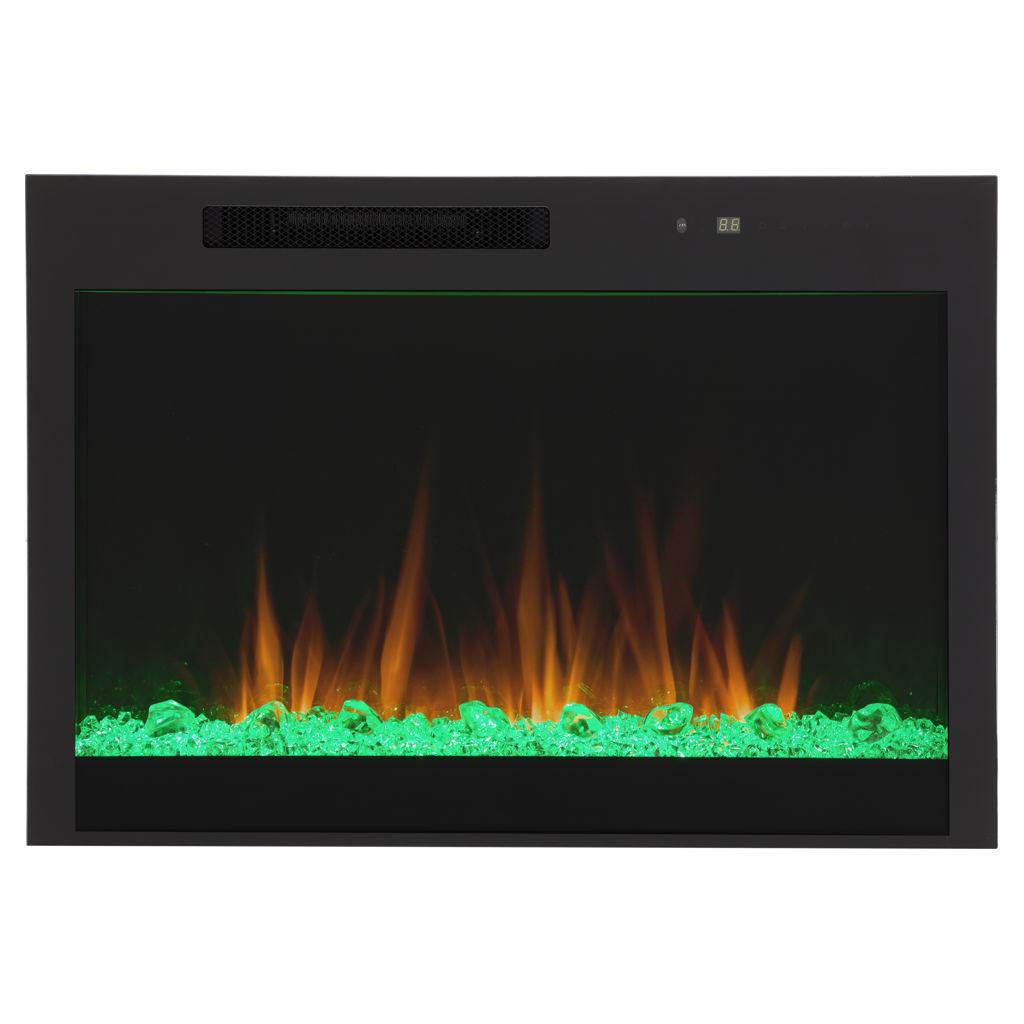 The flame effect creates a remarkable visual impact, with the ability to change the color of the flames and the ember bed to suit your style and mood.