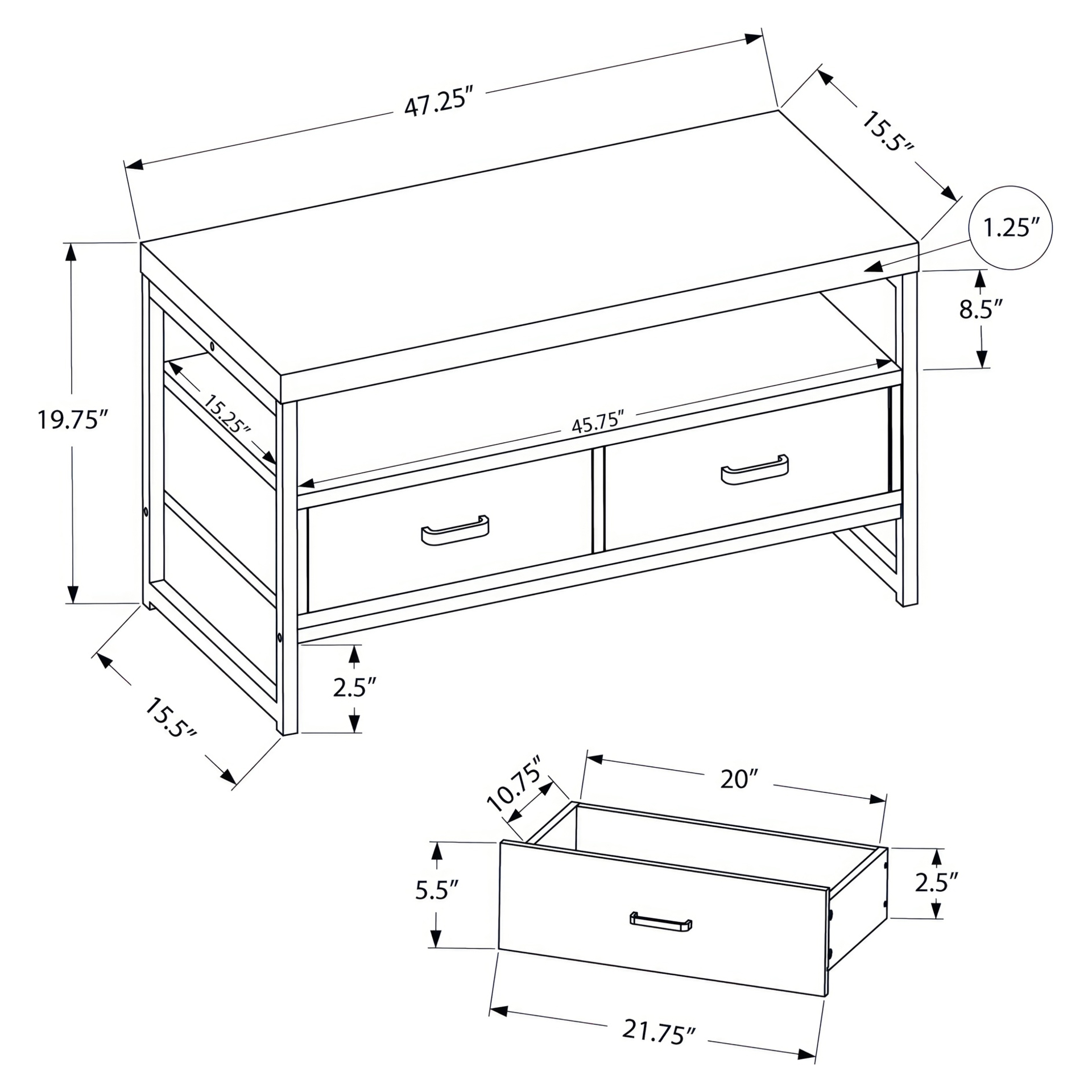 • Number of drawers : 2 drawers