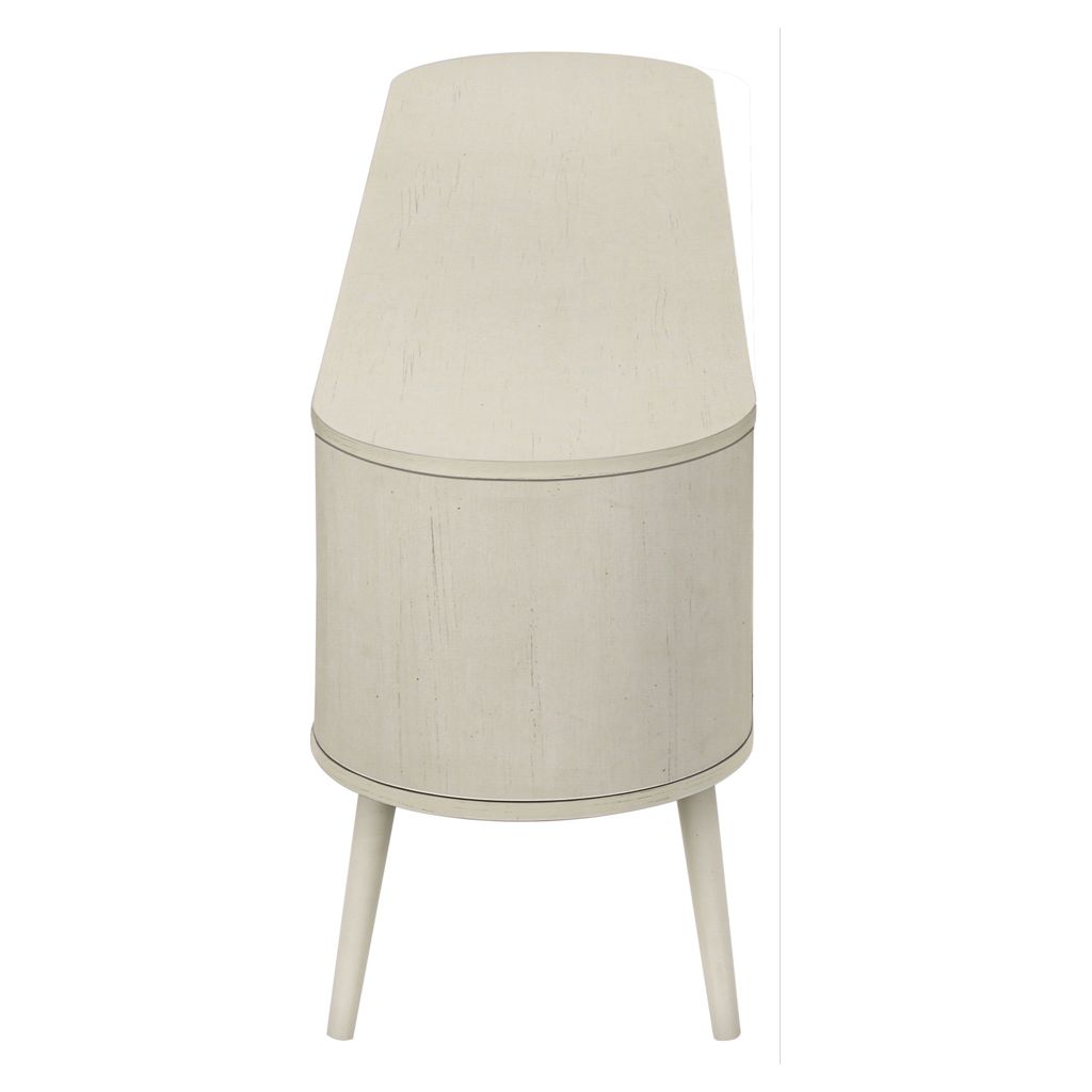 This console features a smooth antique white laminate finish on all sides with an easy to clean top, adding a touch of retro style to your home decor.
