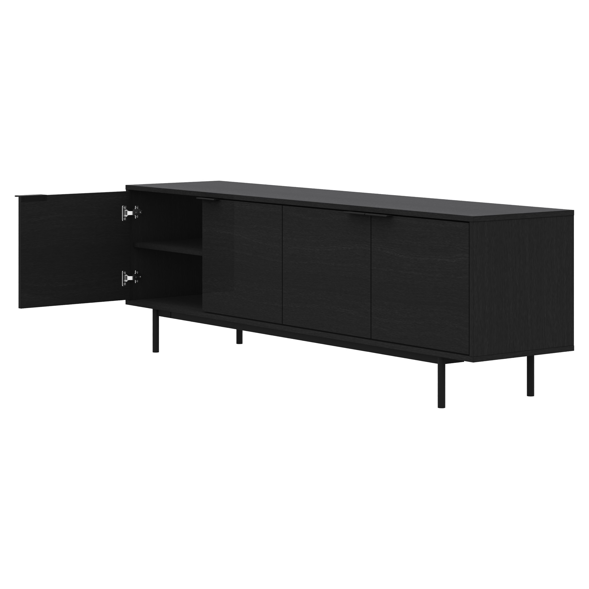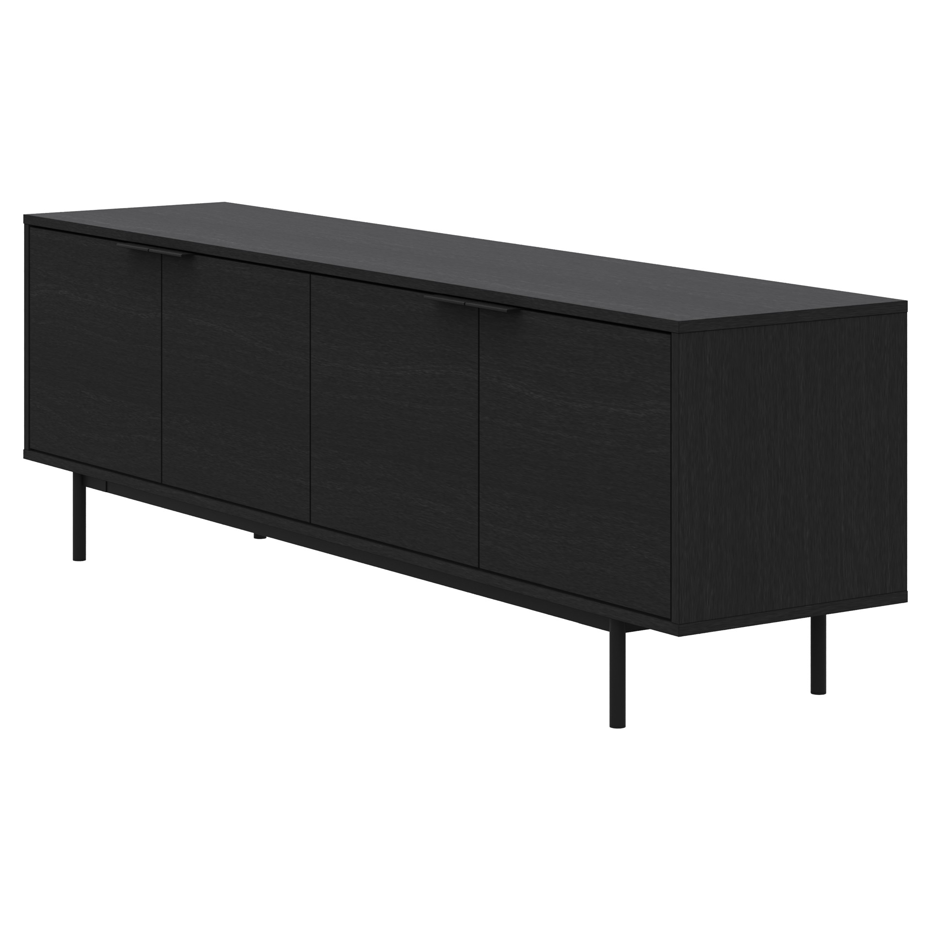Designed with quiet elegance and refined proportions, this low-profile console features four seamless doors that open to reveal generous hidden storage.