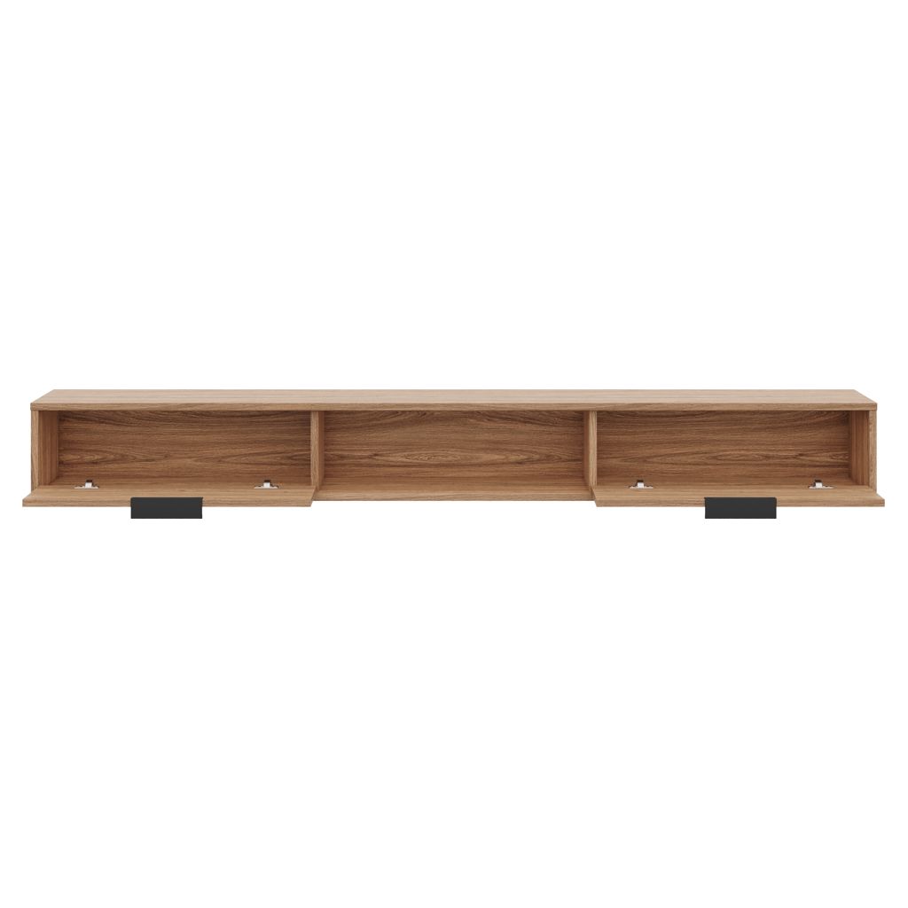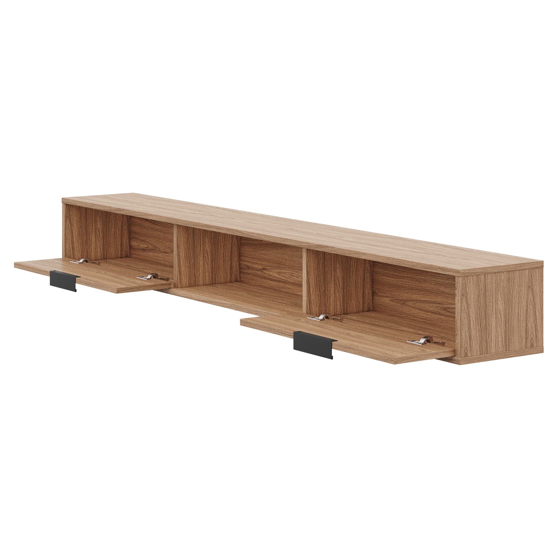 The open center shelf offers space for display or media components, while the closed compartments on each side keep clutter neatly out of sight.