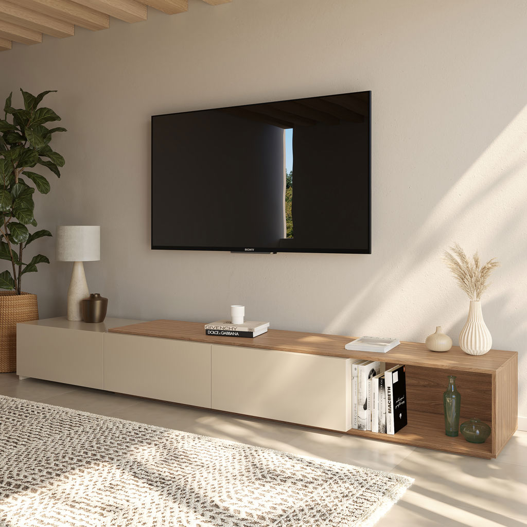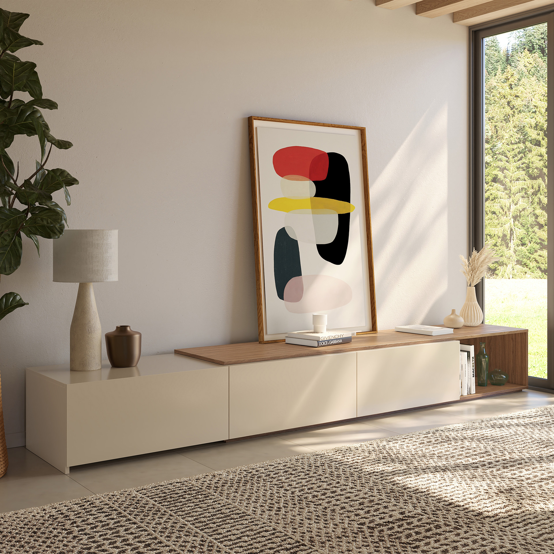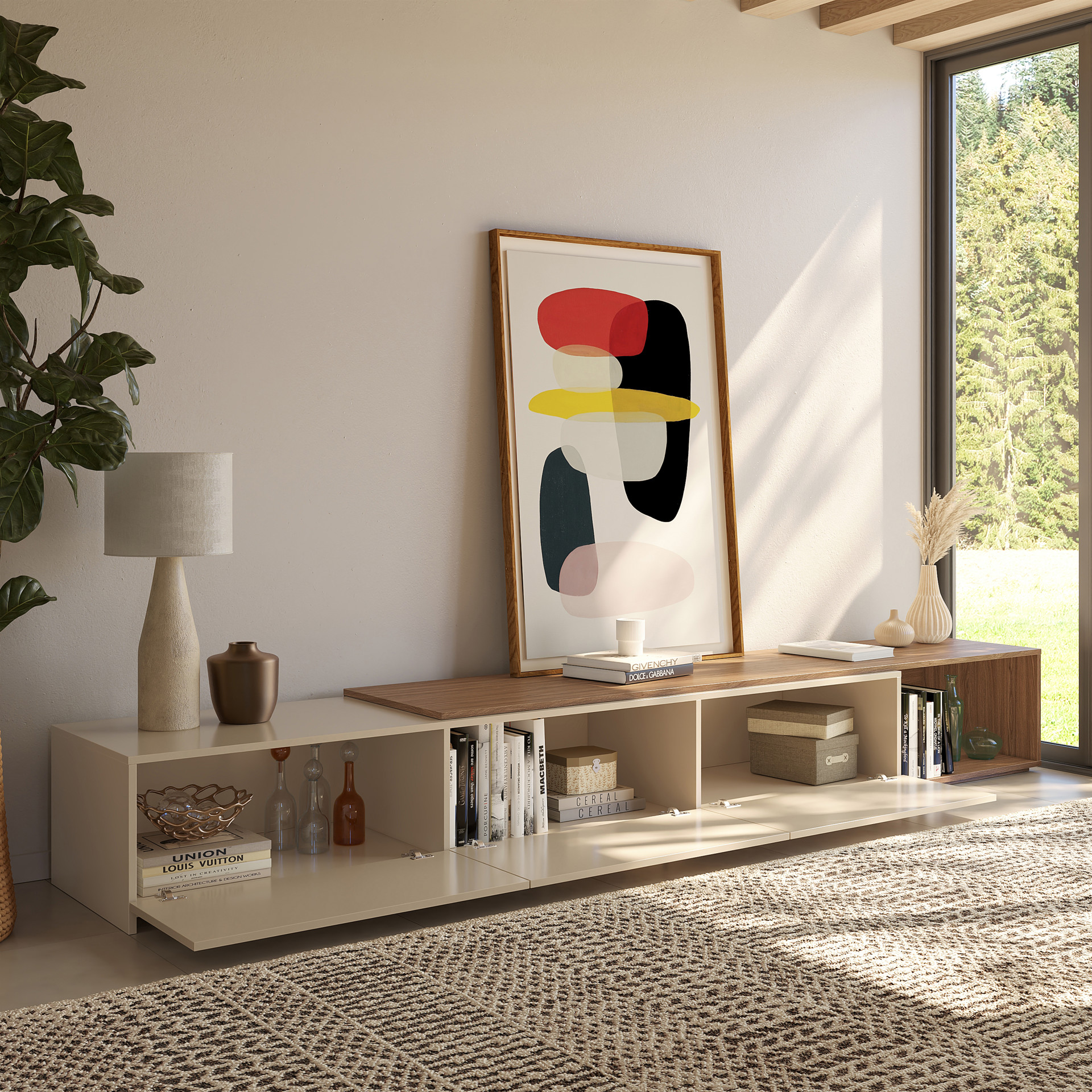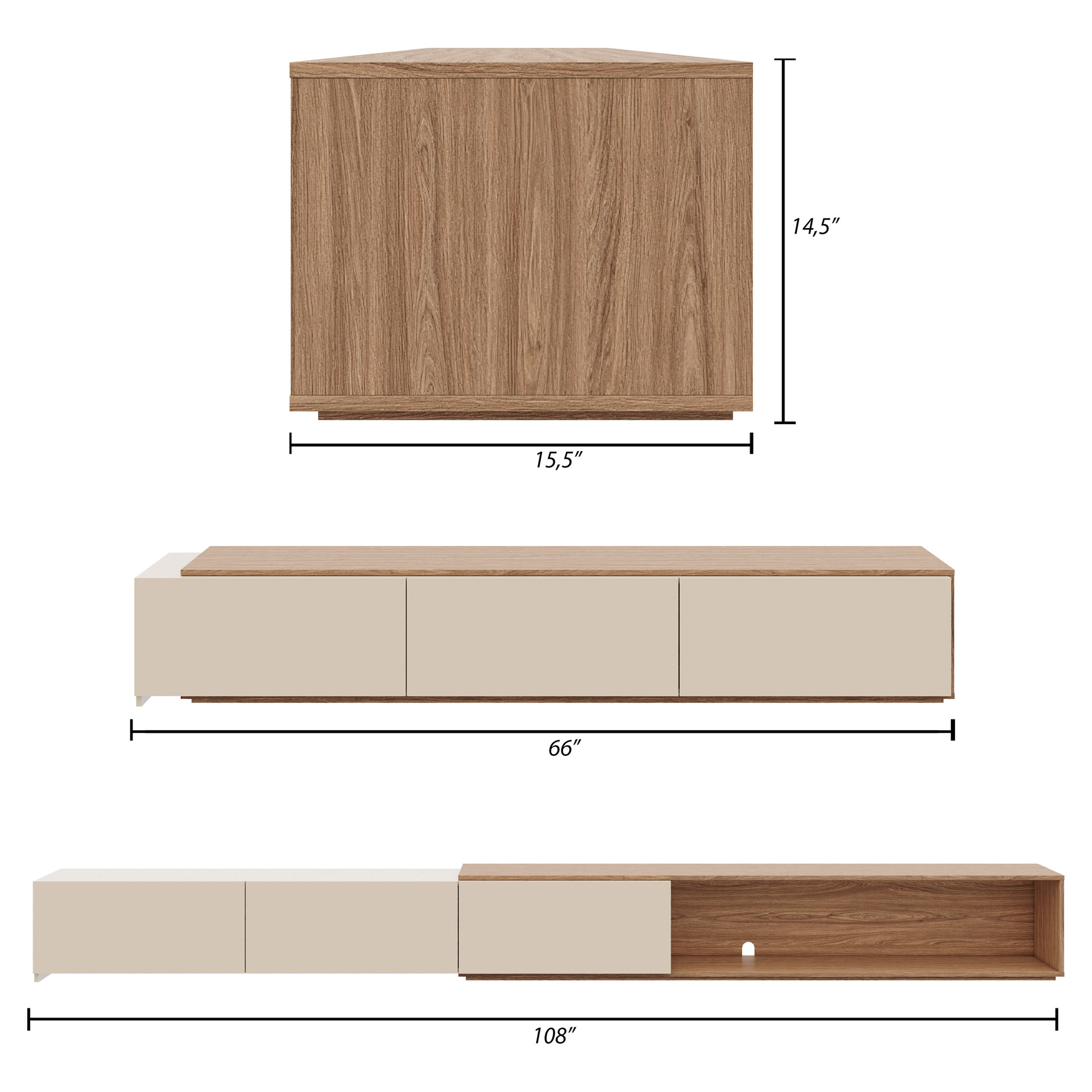 The Arlo extendable TV stand is designed for all spaces. Its smart design easily adjusts from 66 to 108 inches, adapting to your room and your lifestyle.