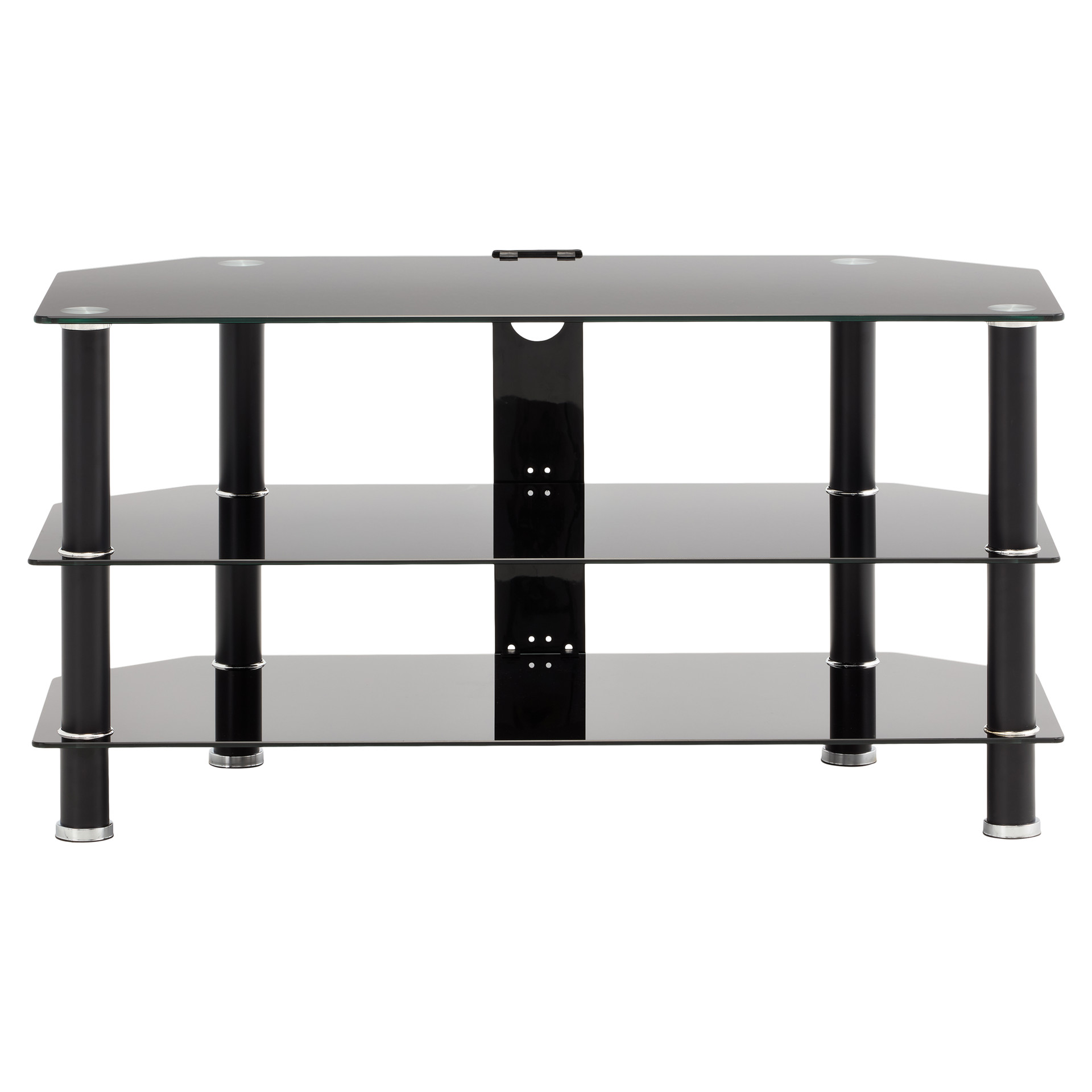 This black glass TV stand will allow you to integrate all the audio devices you need. In addition, its shelves will be able to accommodate sound equipment, game consoles and digital devices.