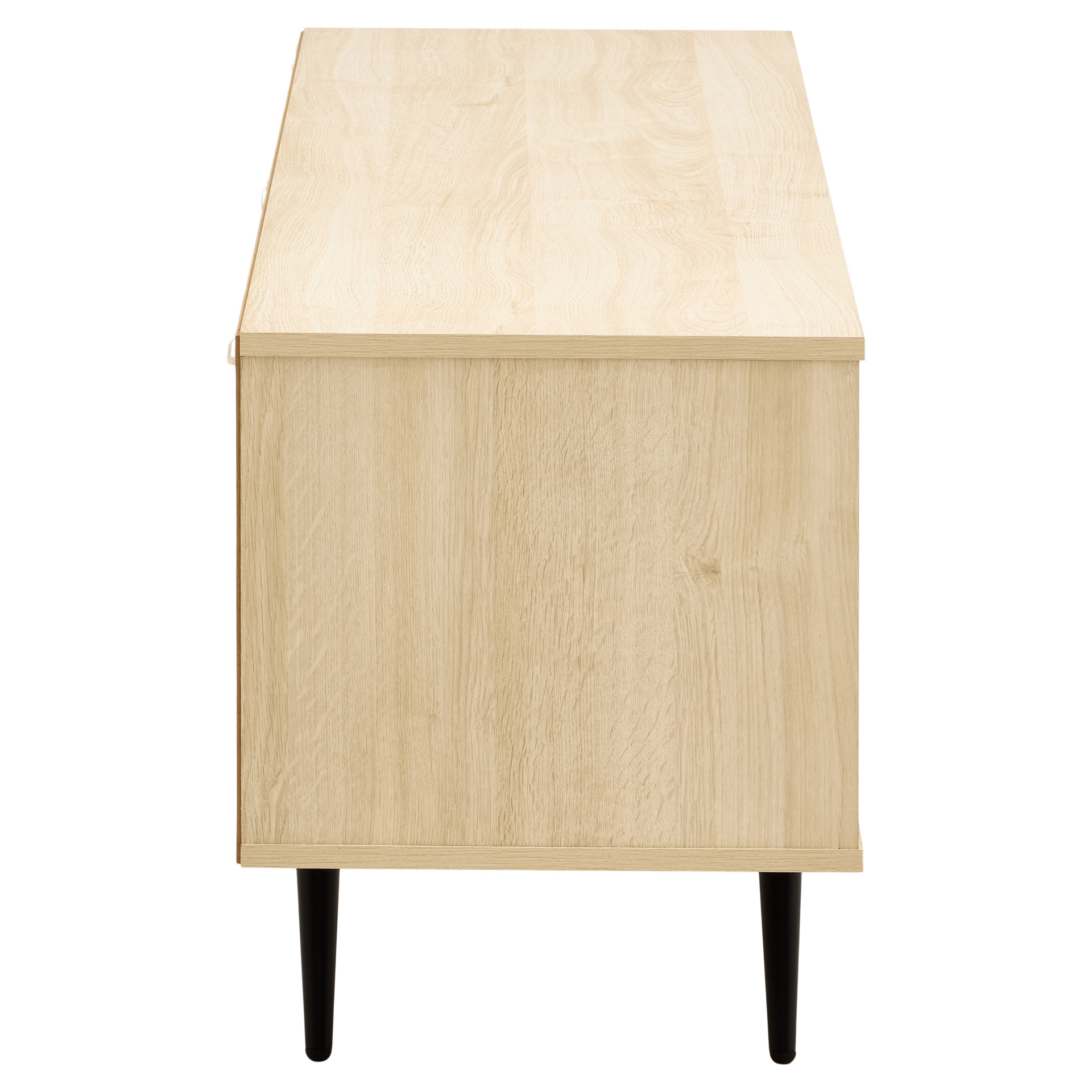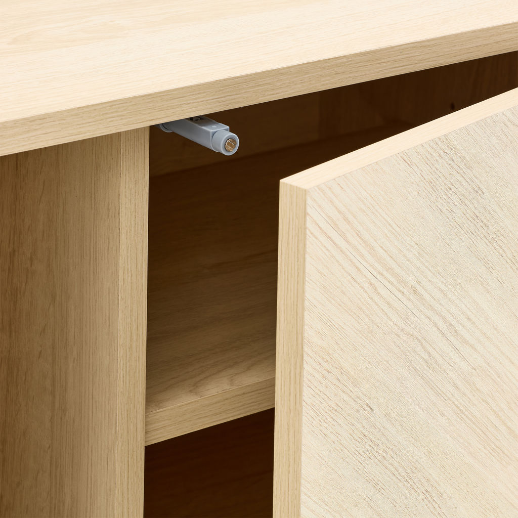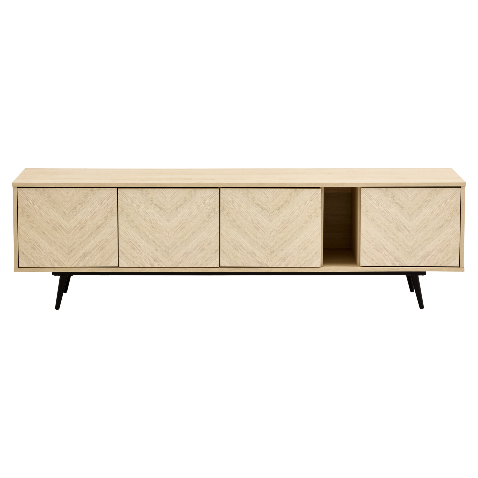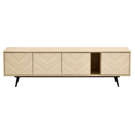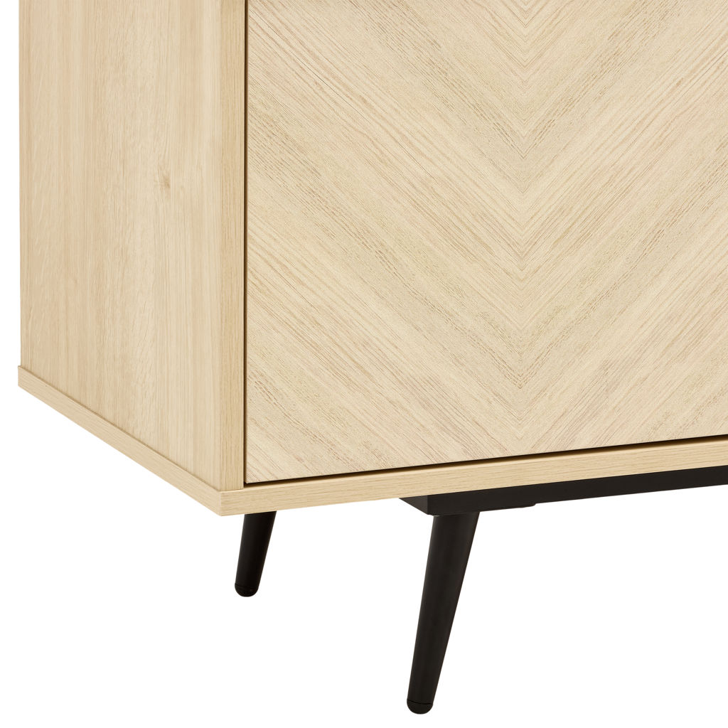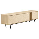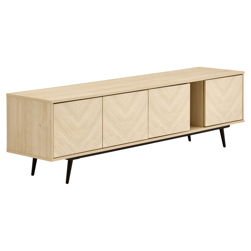 This TV stand is the contemporary touch that transforms the living room. Its slim metal legs and 71-inch length bring a sense of lightness and modernity. The handle-free design, achieved through a touch-to-open mechanism, creates an ever smoother and more refined appearance. The finishing touch, geometric patterns on the façade, gives it that extra something that catches everyone´s eye.