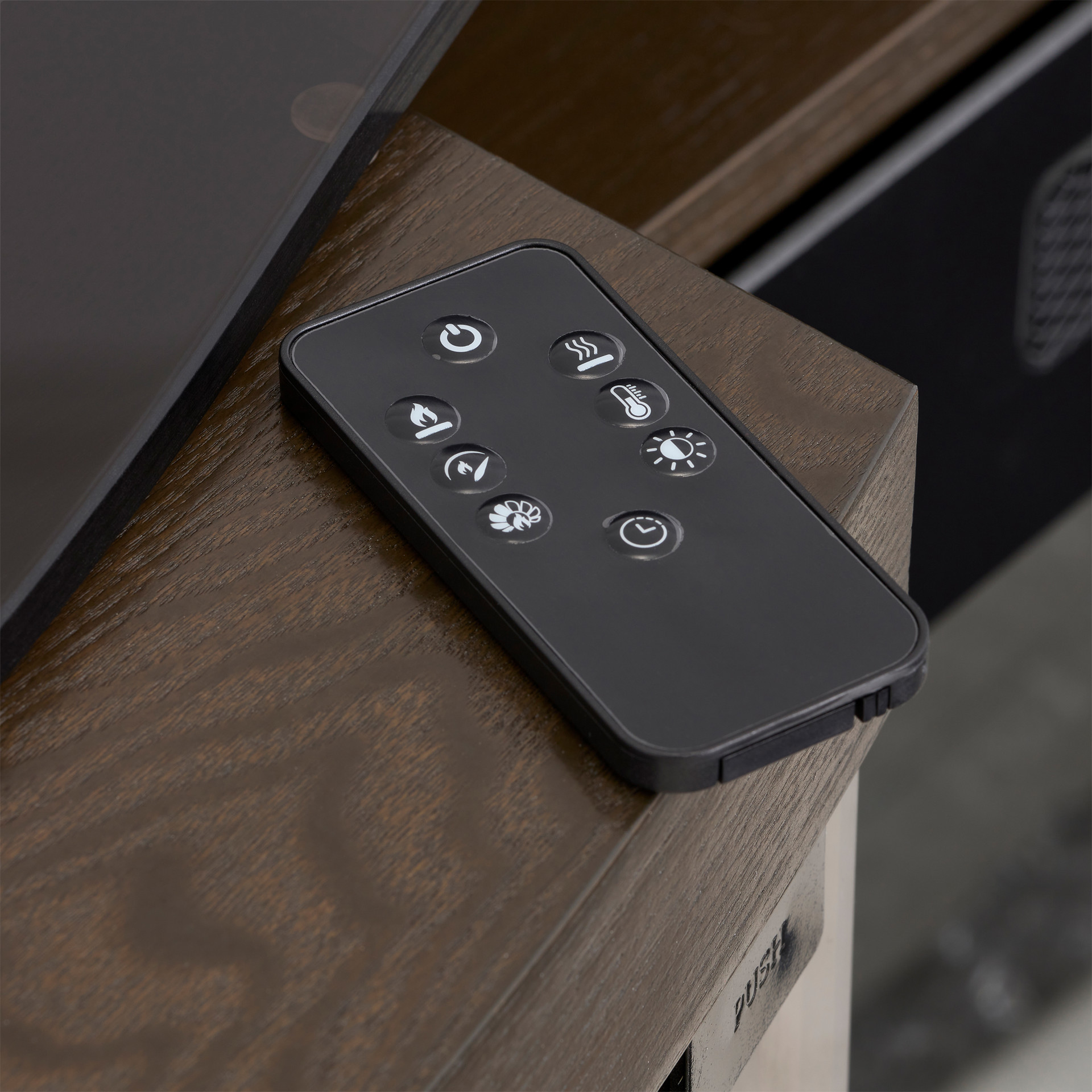 The remote control gives you full control of the fireplace, easily adjusting flame intensity and color, ember bed color, brightness, blower, heat output and timer.