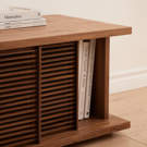 Designed for EQ3 by Tom Chung and crafted from solid wood, Plank rattan doors feature a beautiful six-way weave pattern and offer the perfect marriage of multi-pallet personalization and closed storage.