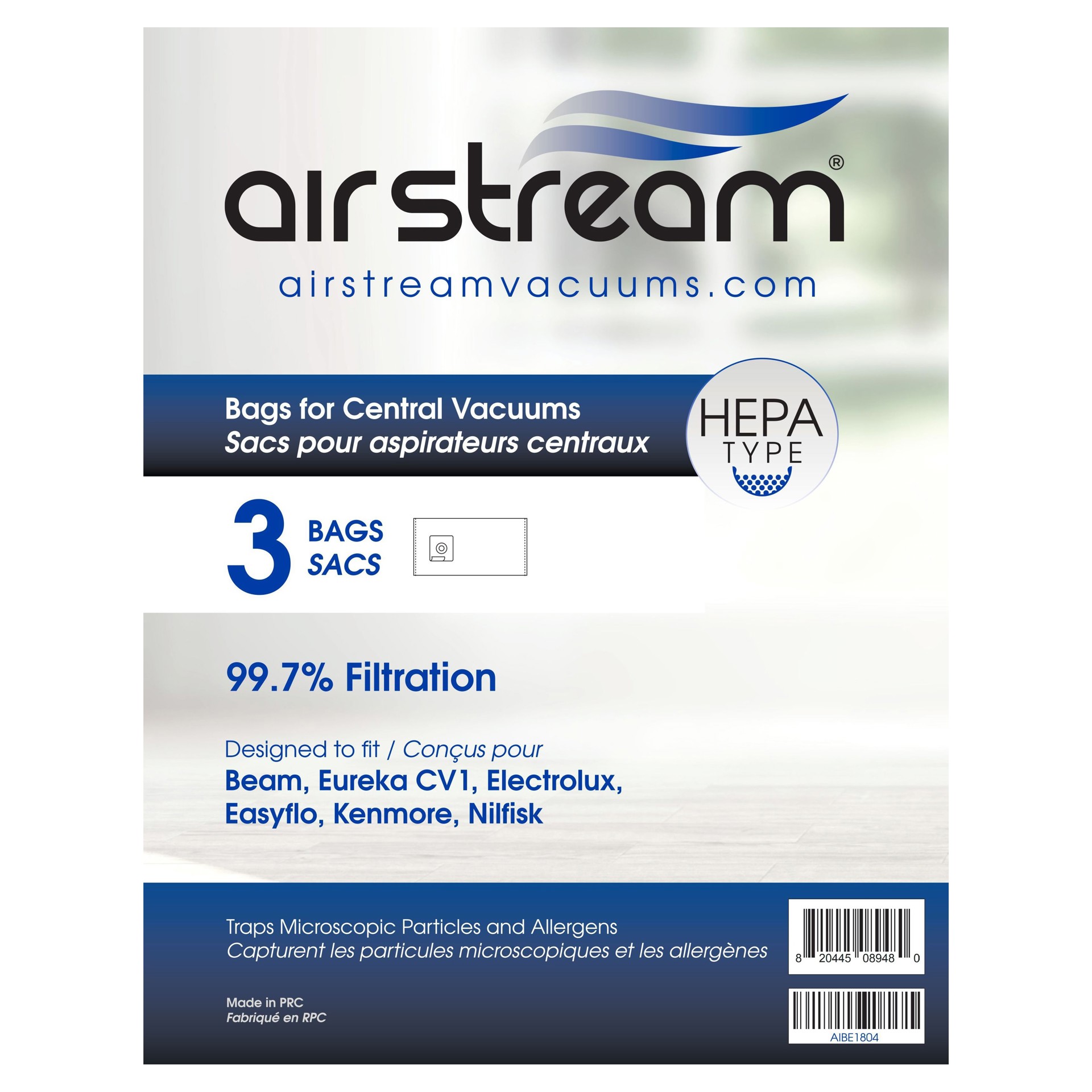 Set of 3 HEPA Central Vacuum Bags Airstream AINU1804